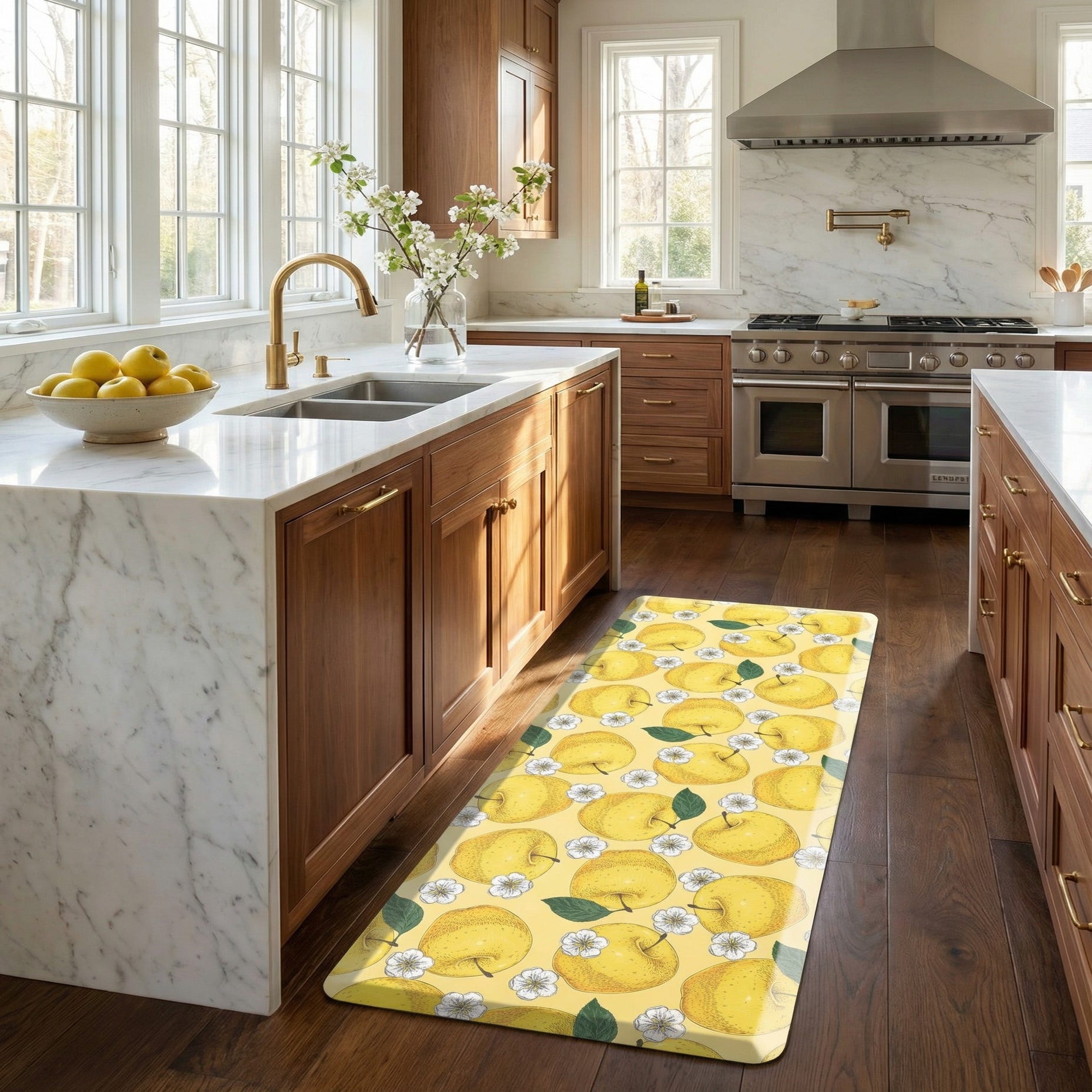 Primary color is Yellow. Colors in this rug include: Yellow, Black, Green, Ivory.