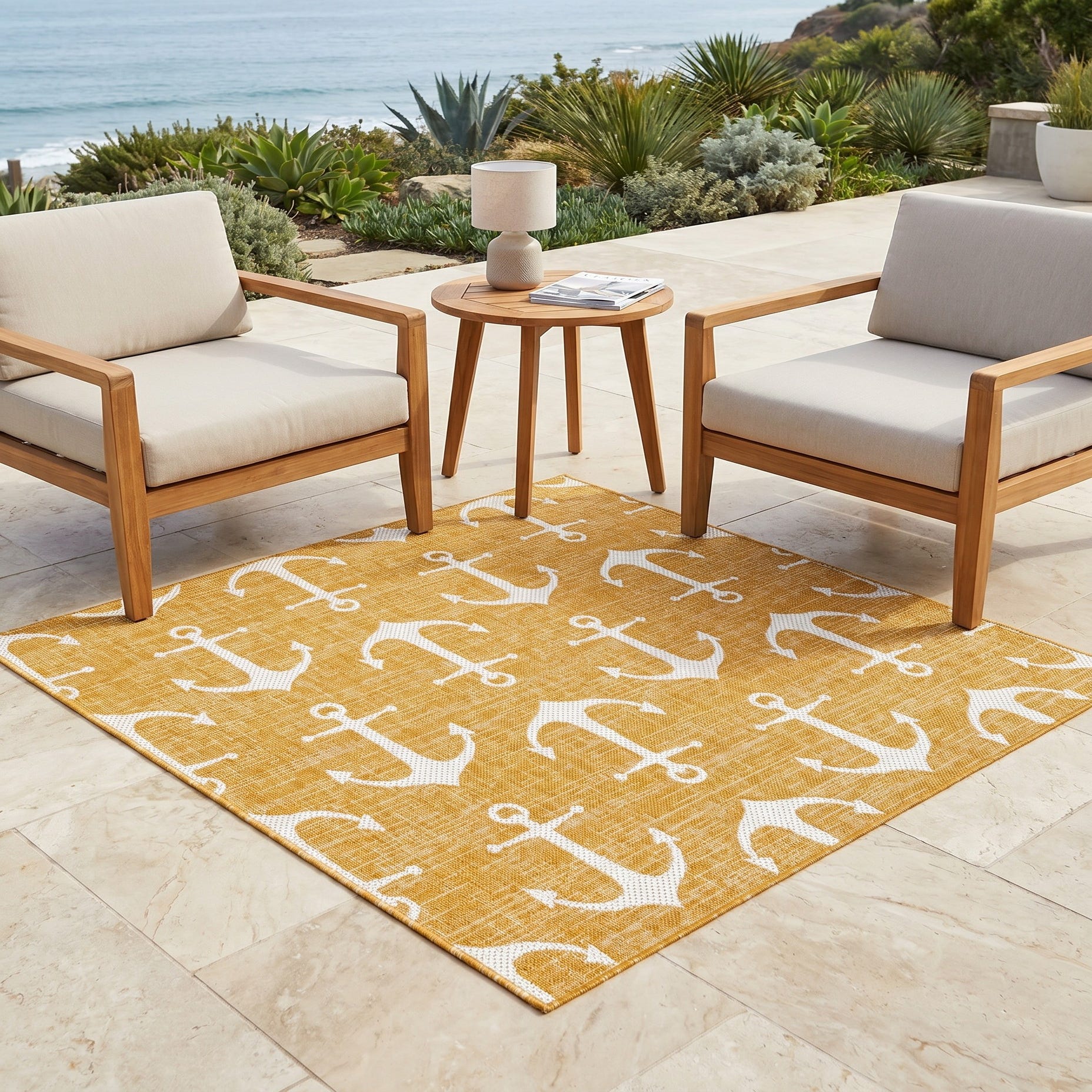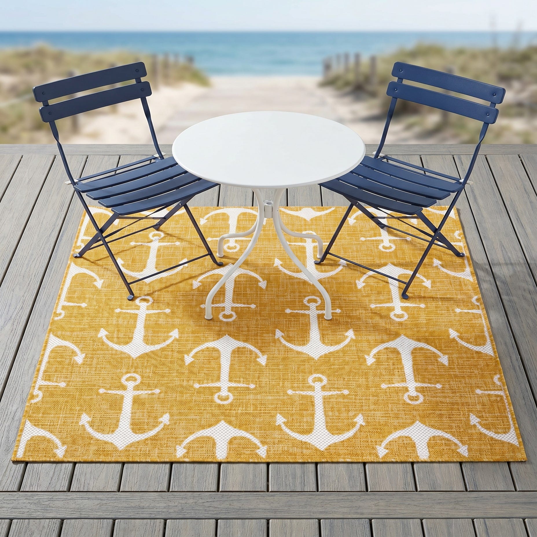 5' 3 x 5' 3 Easy-Clean Coastal Indoor / Outdoor Square Rug