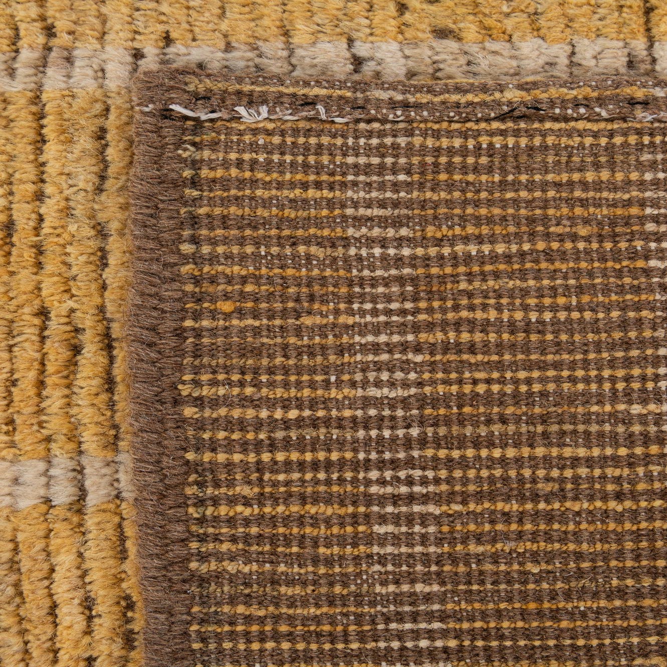 Primary color is Yellow. Colors in this rug include: Yellow, Ivory.