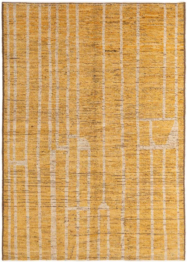 A 5x8 rectangular Darya rug with a modern abstract pattern in varying shades of yellow and gold.