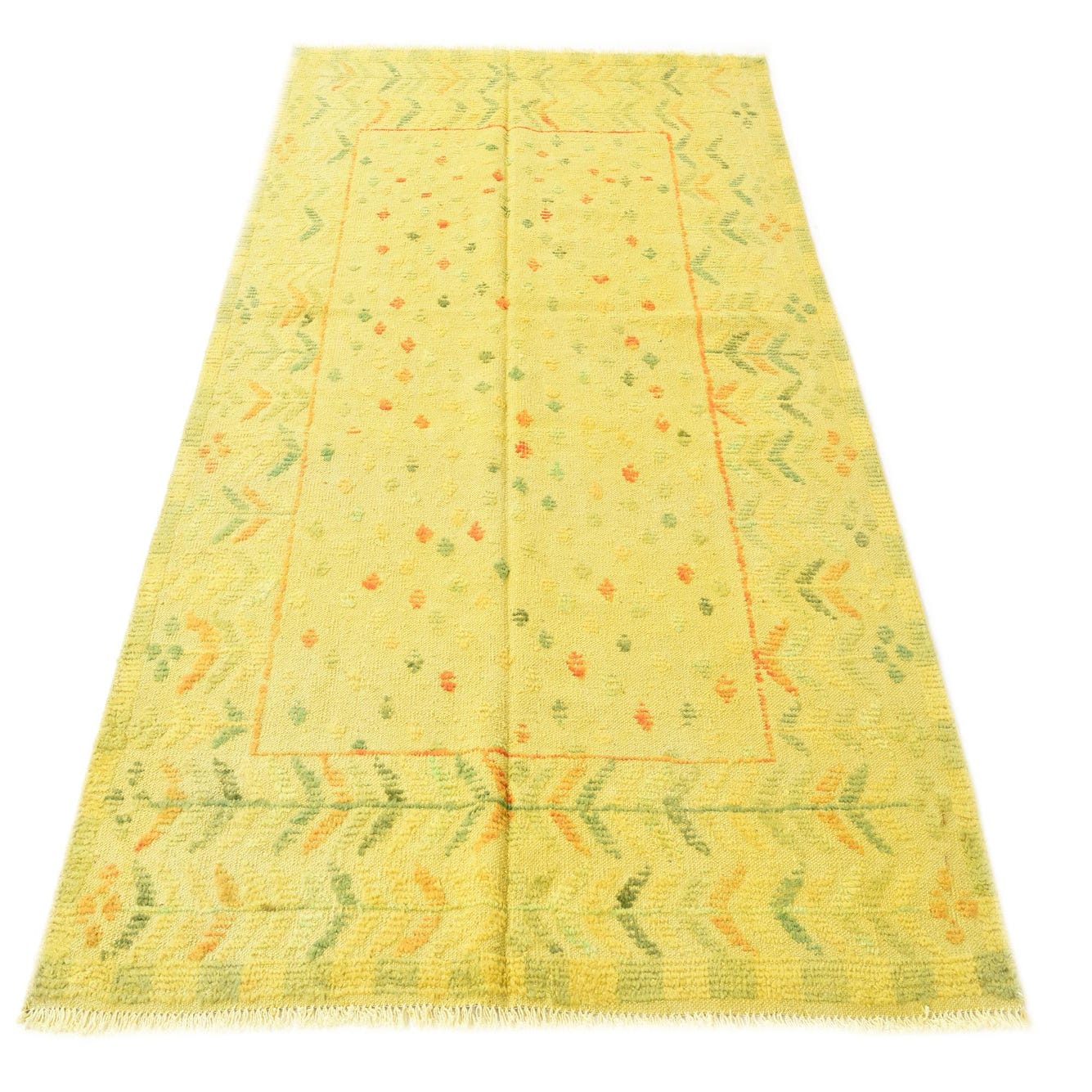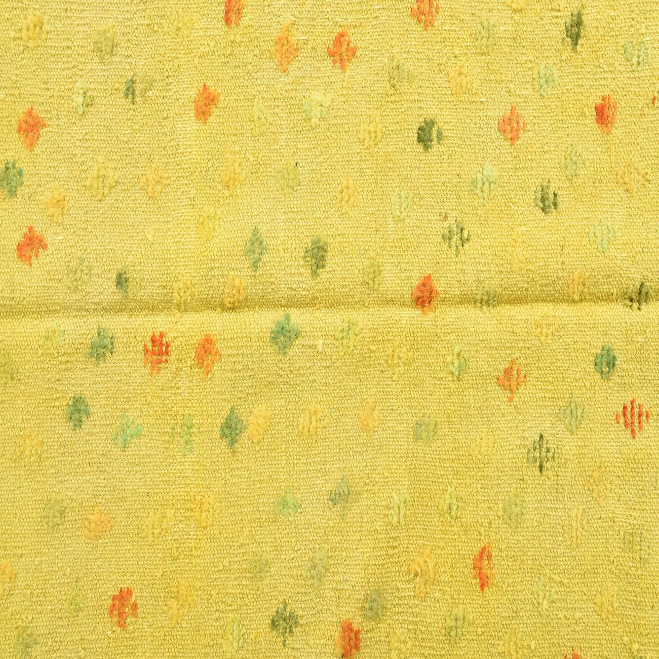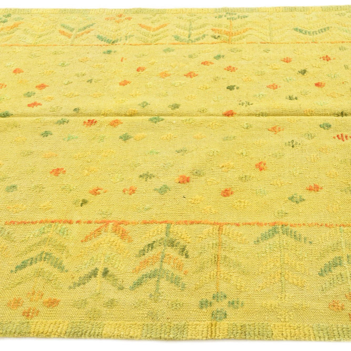 Primary color is Yellow. Colors in this rug include: Yellow, Olive, Orange.