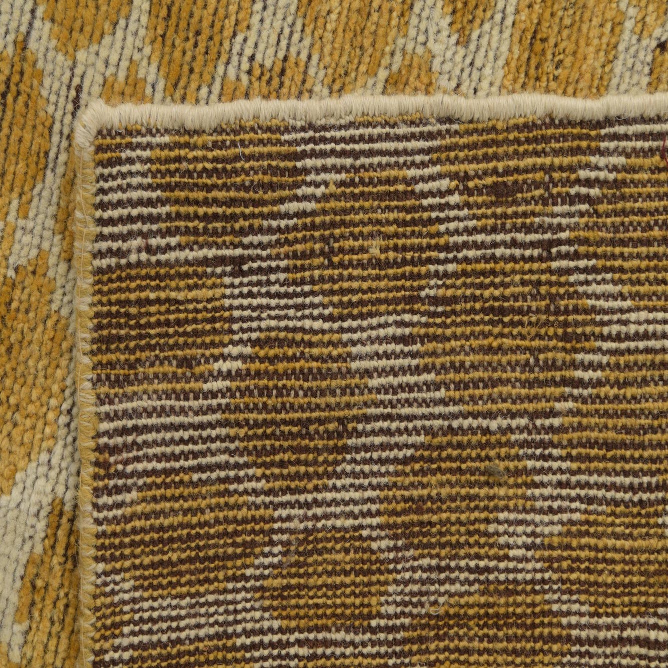 Primary color is Yellow. Colors in this rug include: Yellow, Ivory.