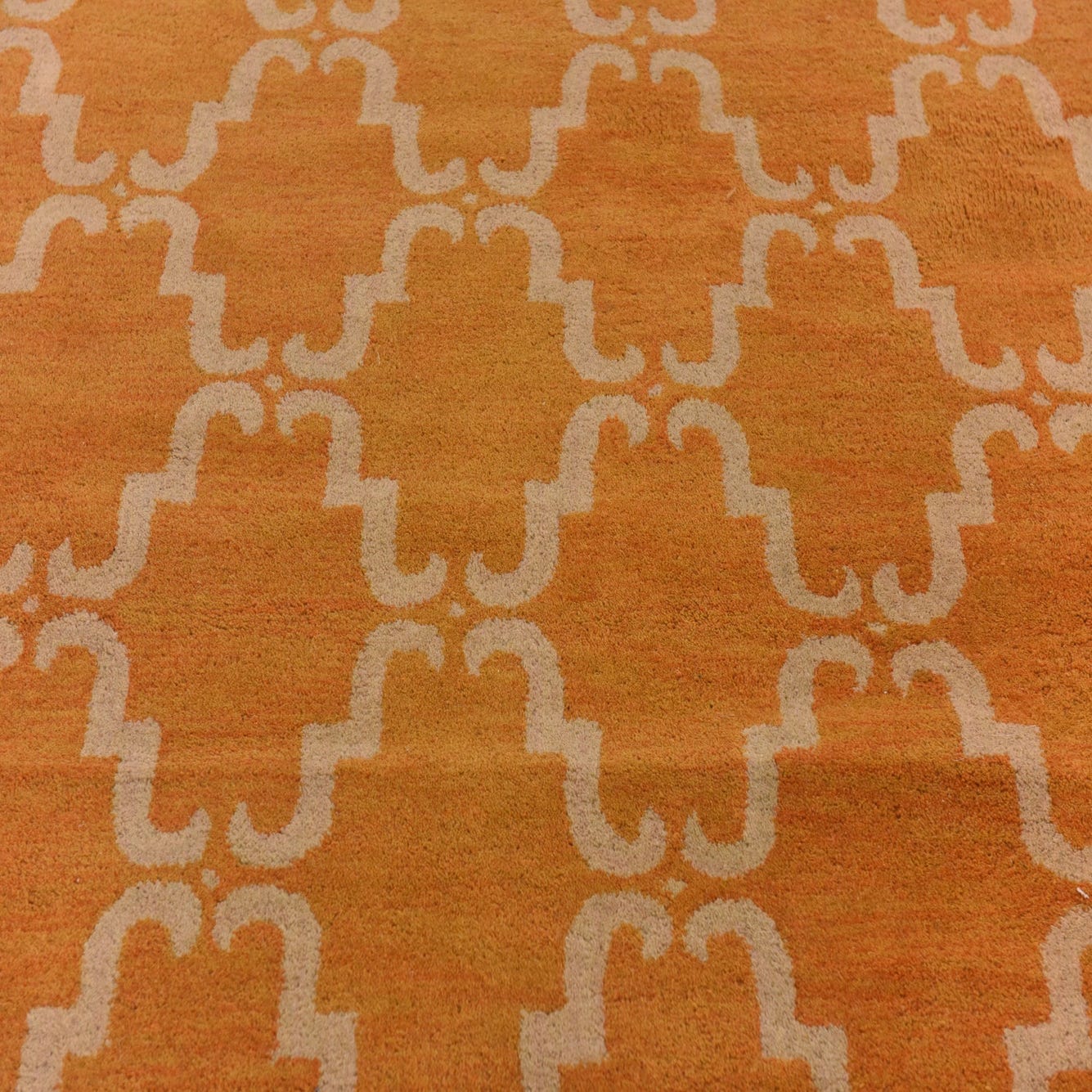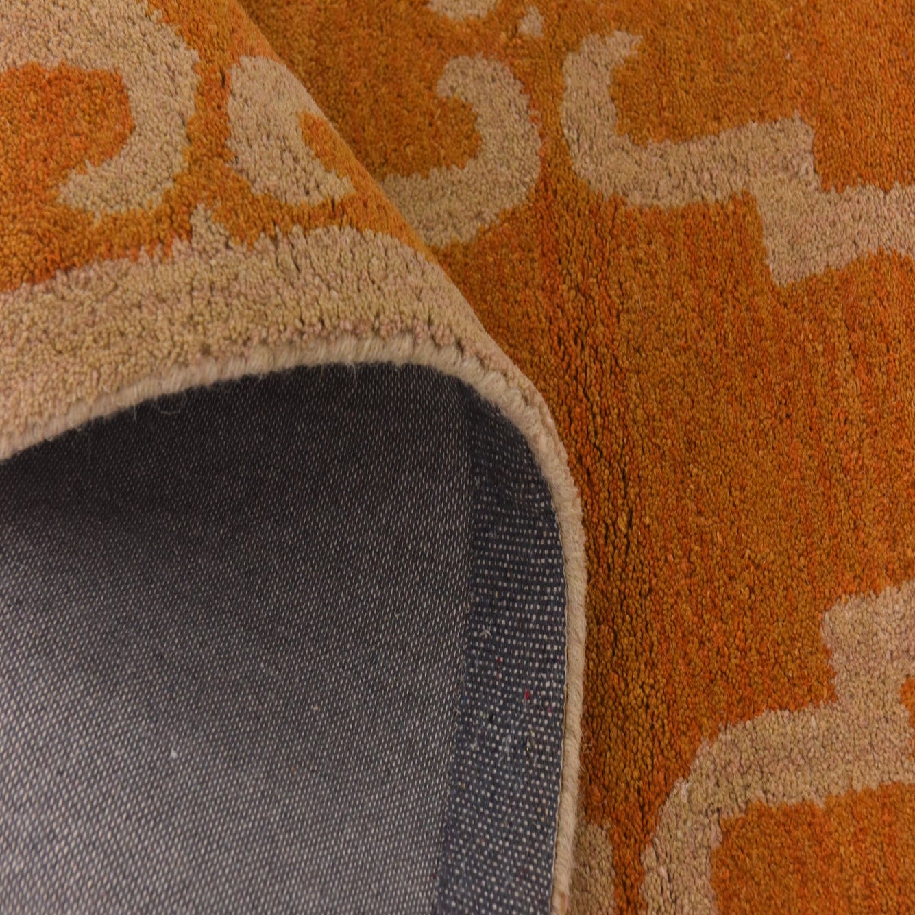 The Luna collection presents a 5x8 hand-tufted rug crafted from 100% wool, offering both comfort and durability. Dominated by a vibrant yellow background, this piece features a dynamic pattern of interlocking trellis motifs in a contrasting beige, creating a bold statement within its design. The interplay of the colors adds a cheerful yet sophisticated touch to the rug's overall aesthetic.