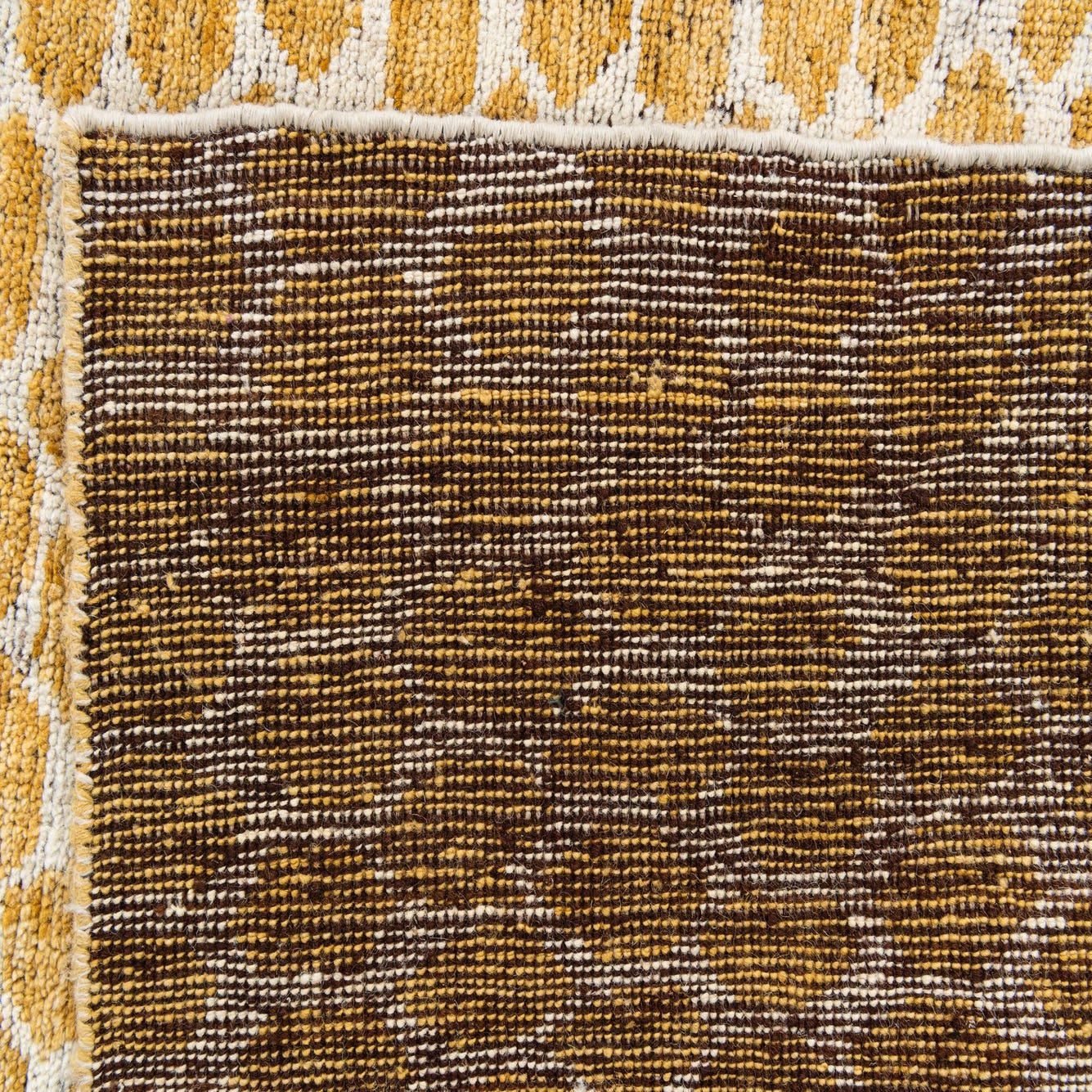 Primary color is Yellow. Colors in this rug include: Yellow, Ivory.