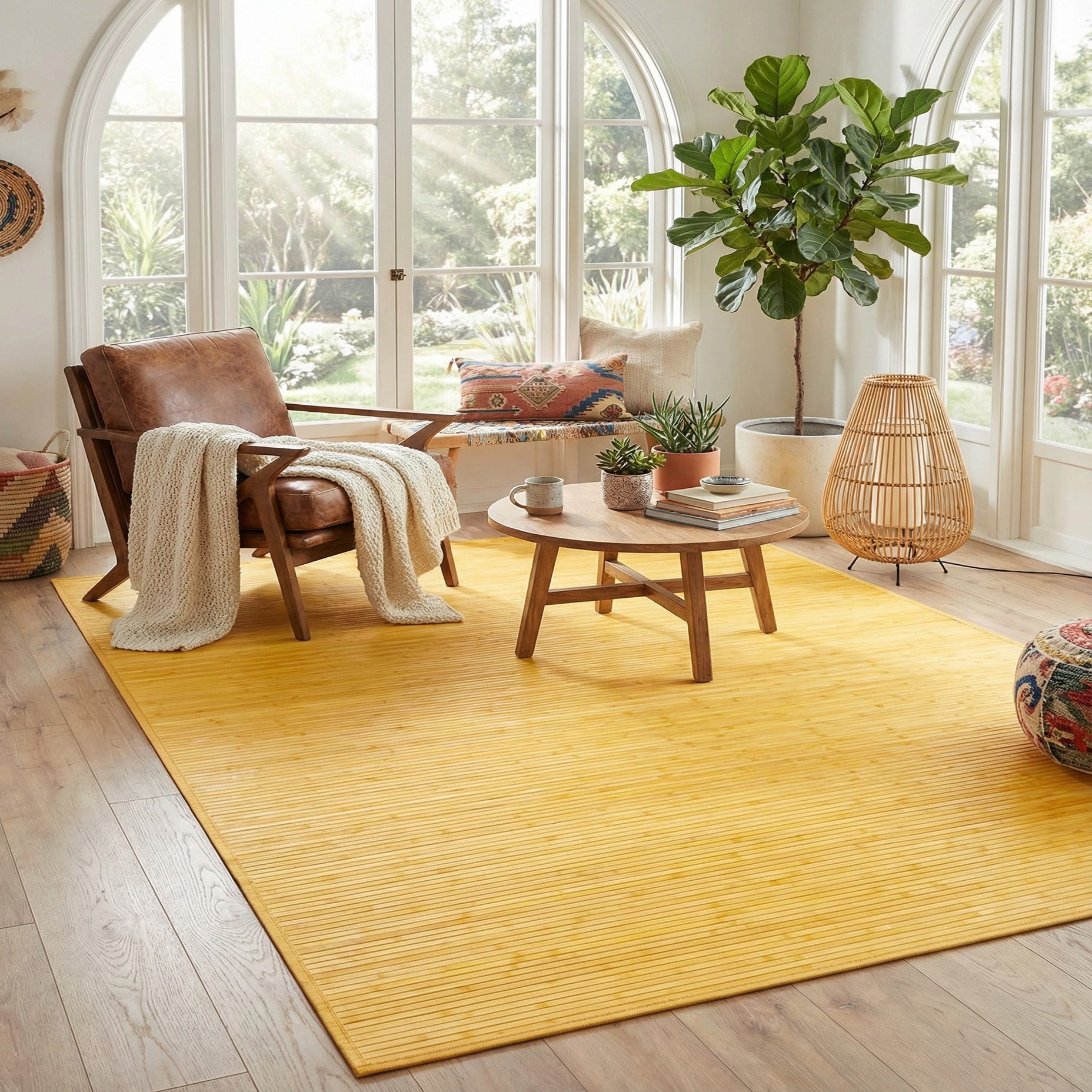Clean and natural in style, this rug complements coastal, Scandinavian, mid-century, and contemporary interiors. It works well in dining areas, sunrooms, kitchens, entryways, or layered in living rooms to add a bright, textural layer. Pair it with light wood furniture, rattan or woven accents, white linens, and fresh greenery to emphasize its warm, sunny character.