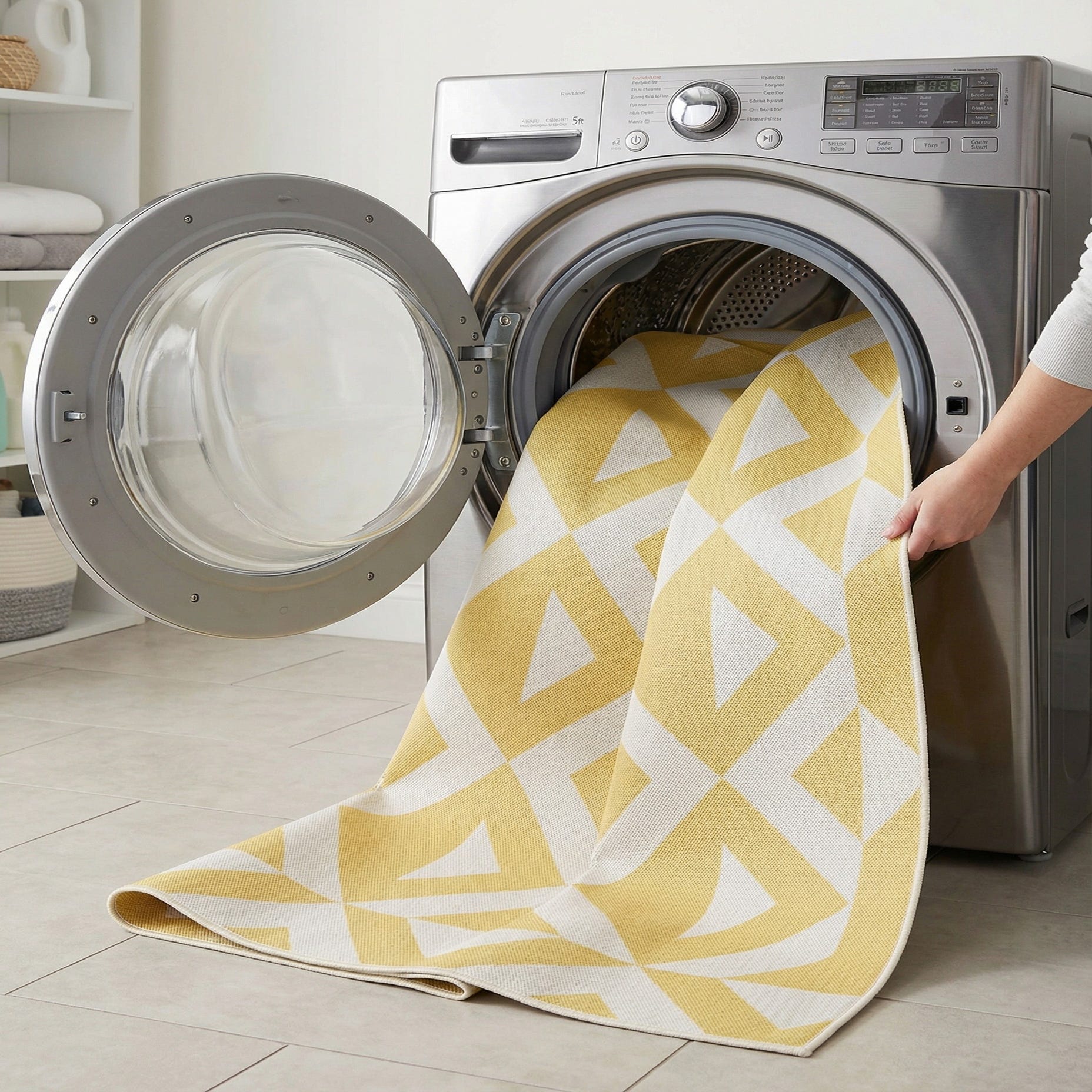 The fresh and contemporary design of this area rug allows it to integrate seamlessly into a variety of décor themes, from minimalist modern to coastal and casual. It can serve as a striking foundation in an outdoor lounge area, under a dining set, or even in an indoor space that benefits from ample natural light. The cheerful yellow hue could complement neutral furniture and decor, or coordinate with bolder colors for a more eclectic aesthetic.
