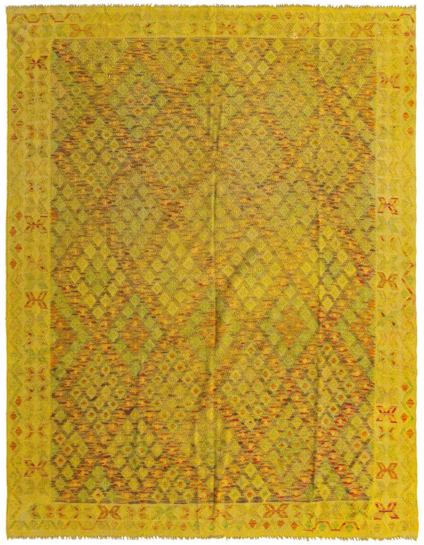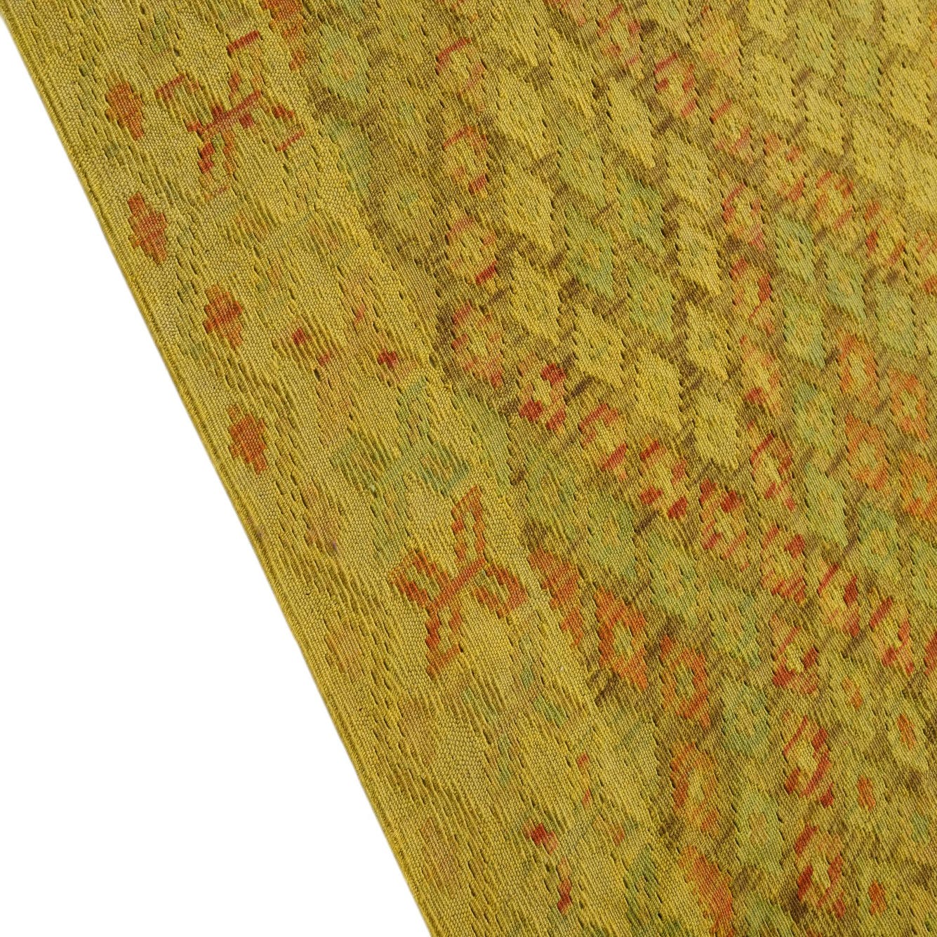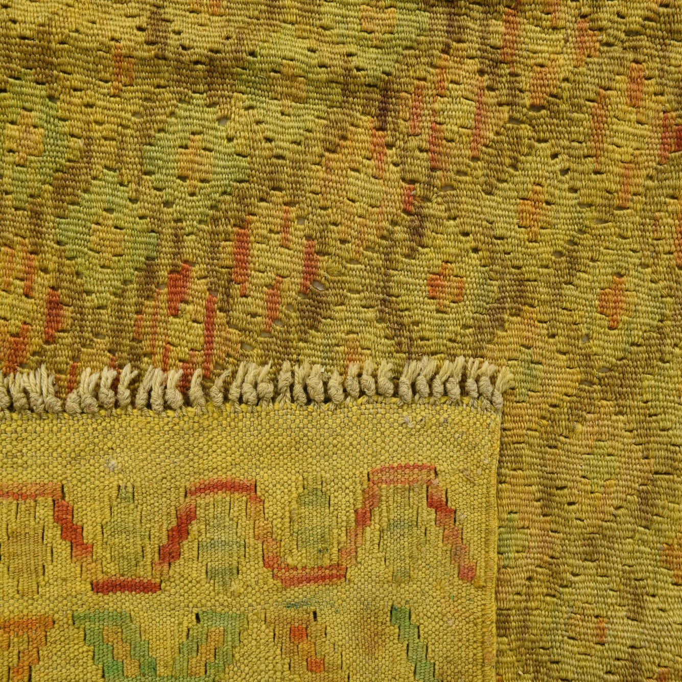 Primary color is Yellow. Colors in this rug include: Yellow, Light Green, Red.