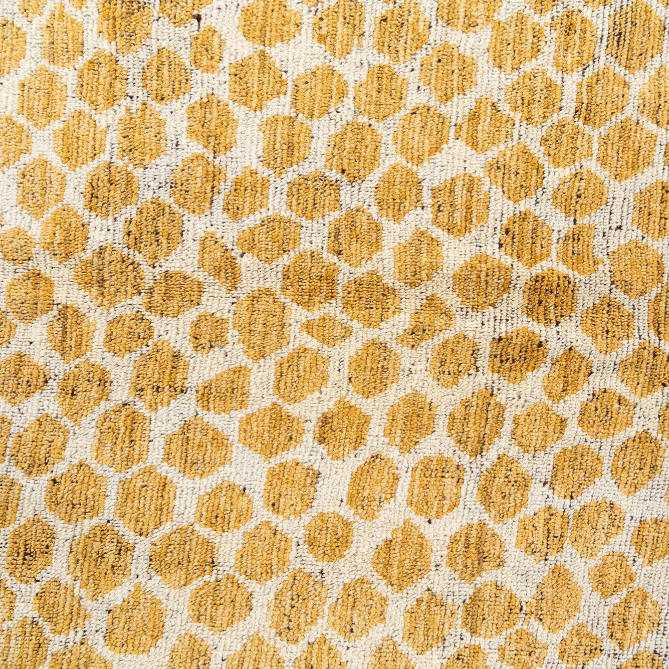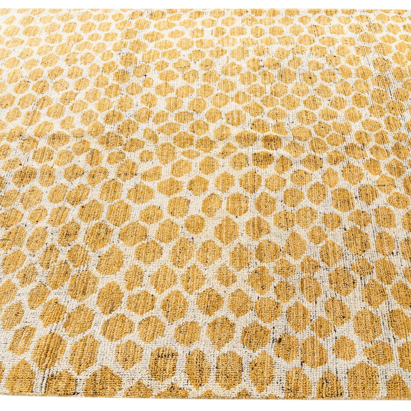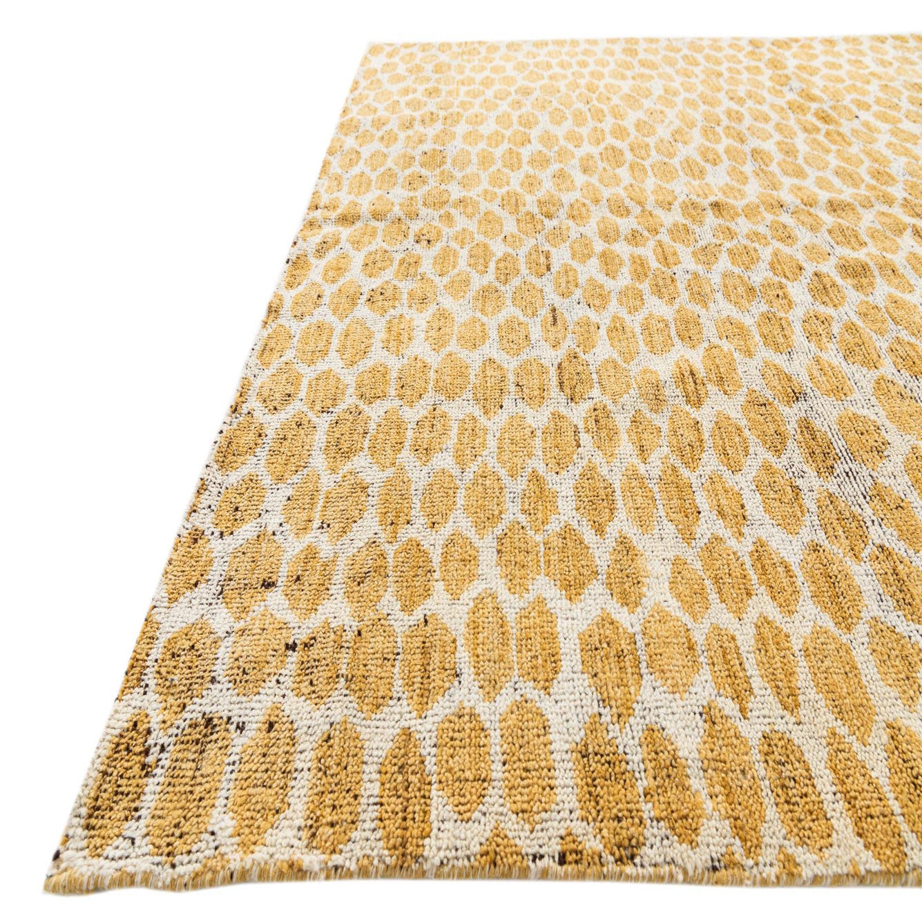 A 6x9 rectangular yellow and cream tribal shag rug with an abstract dotted pattern, perfect for a living room.