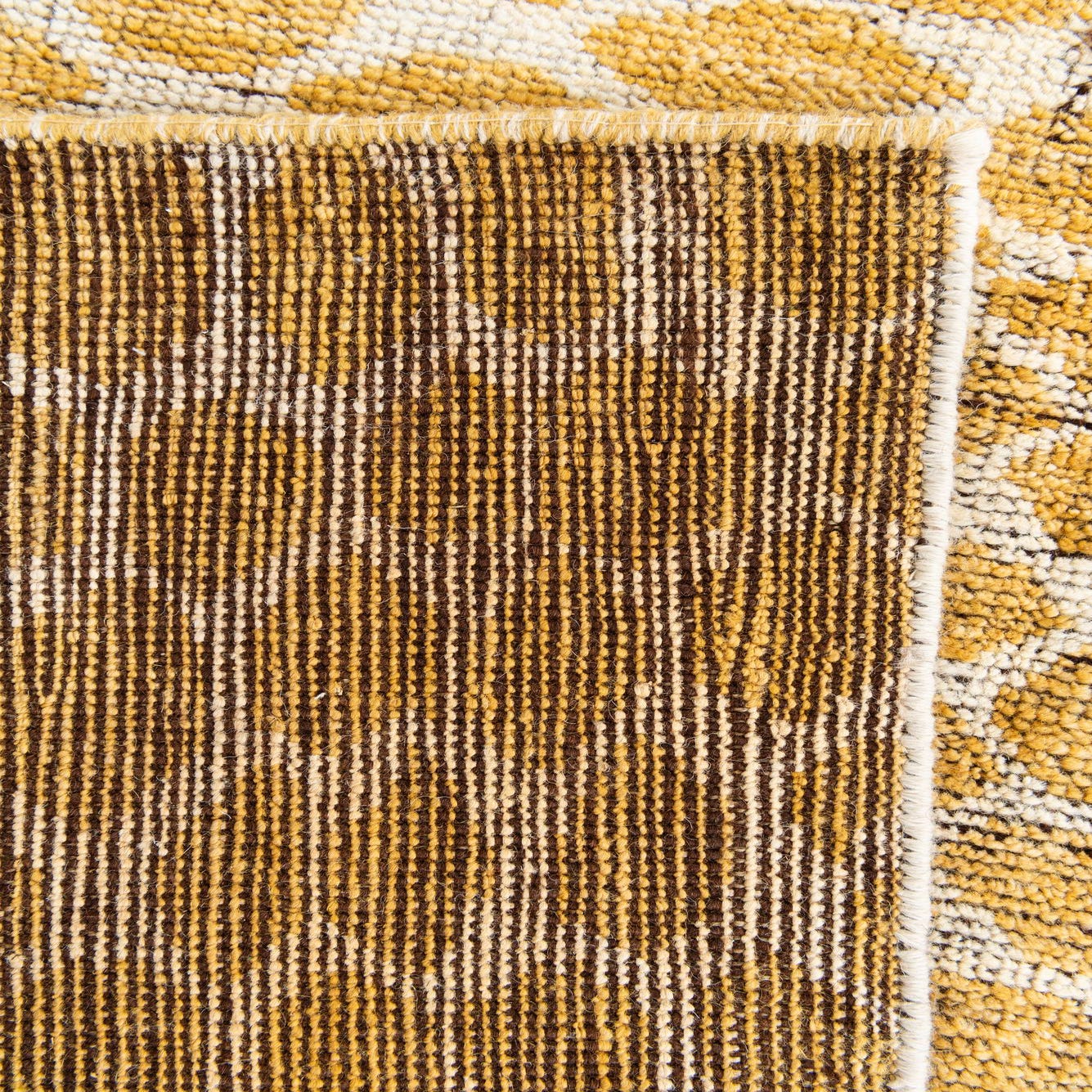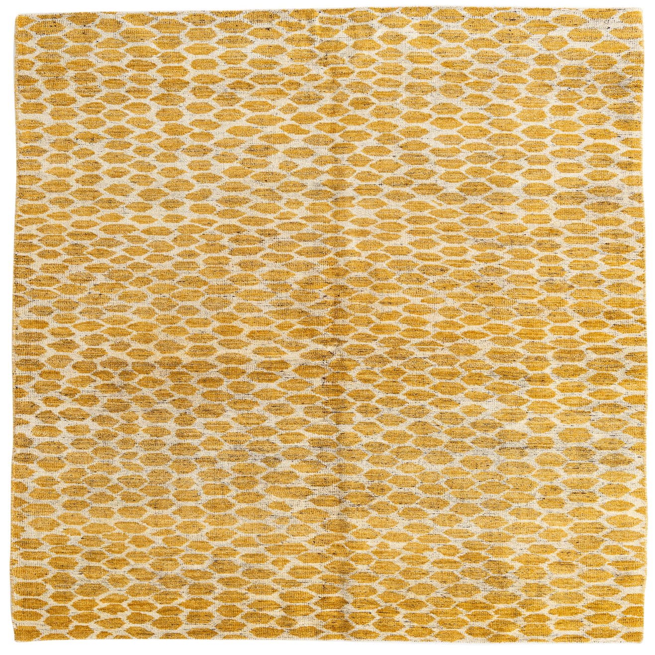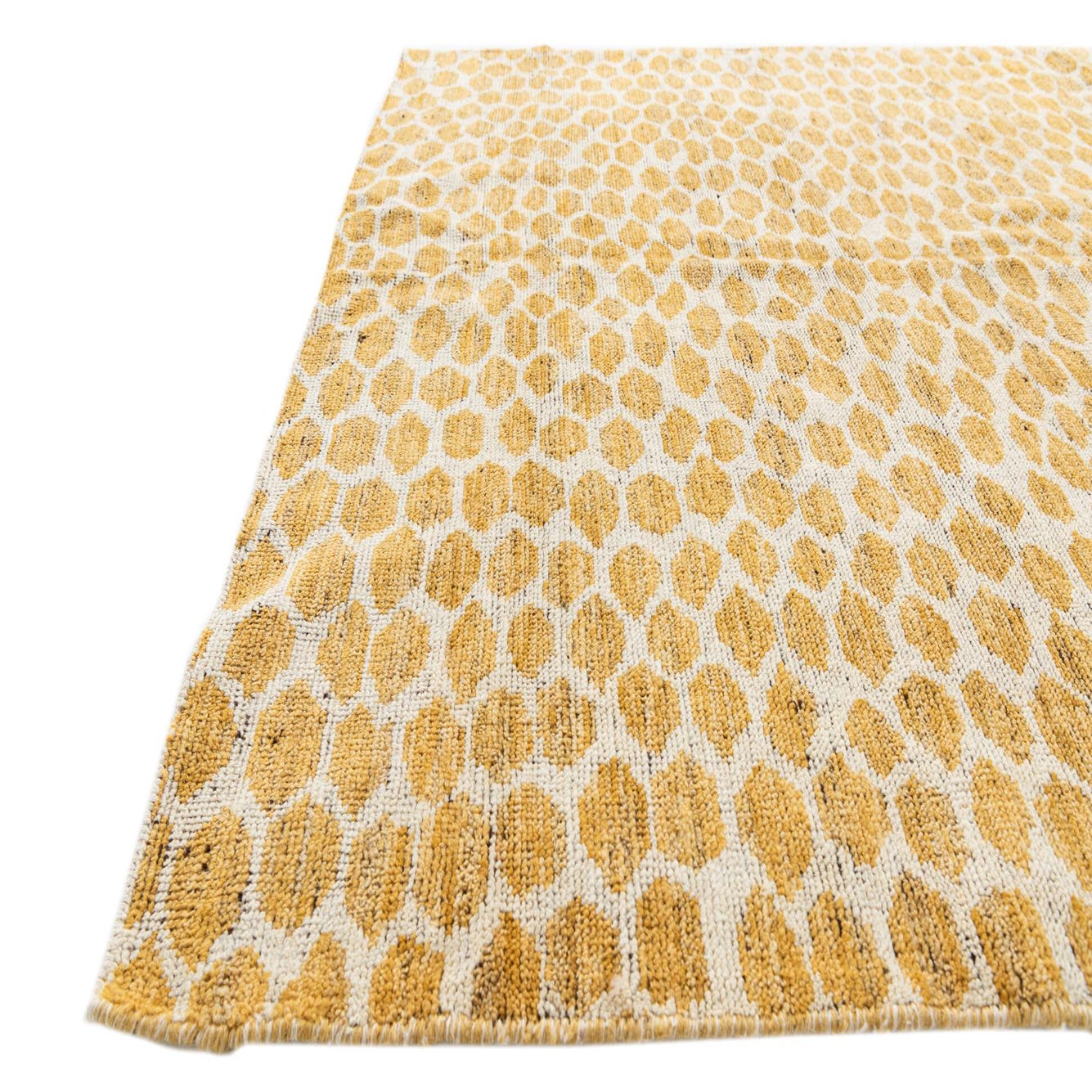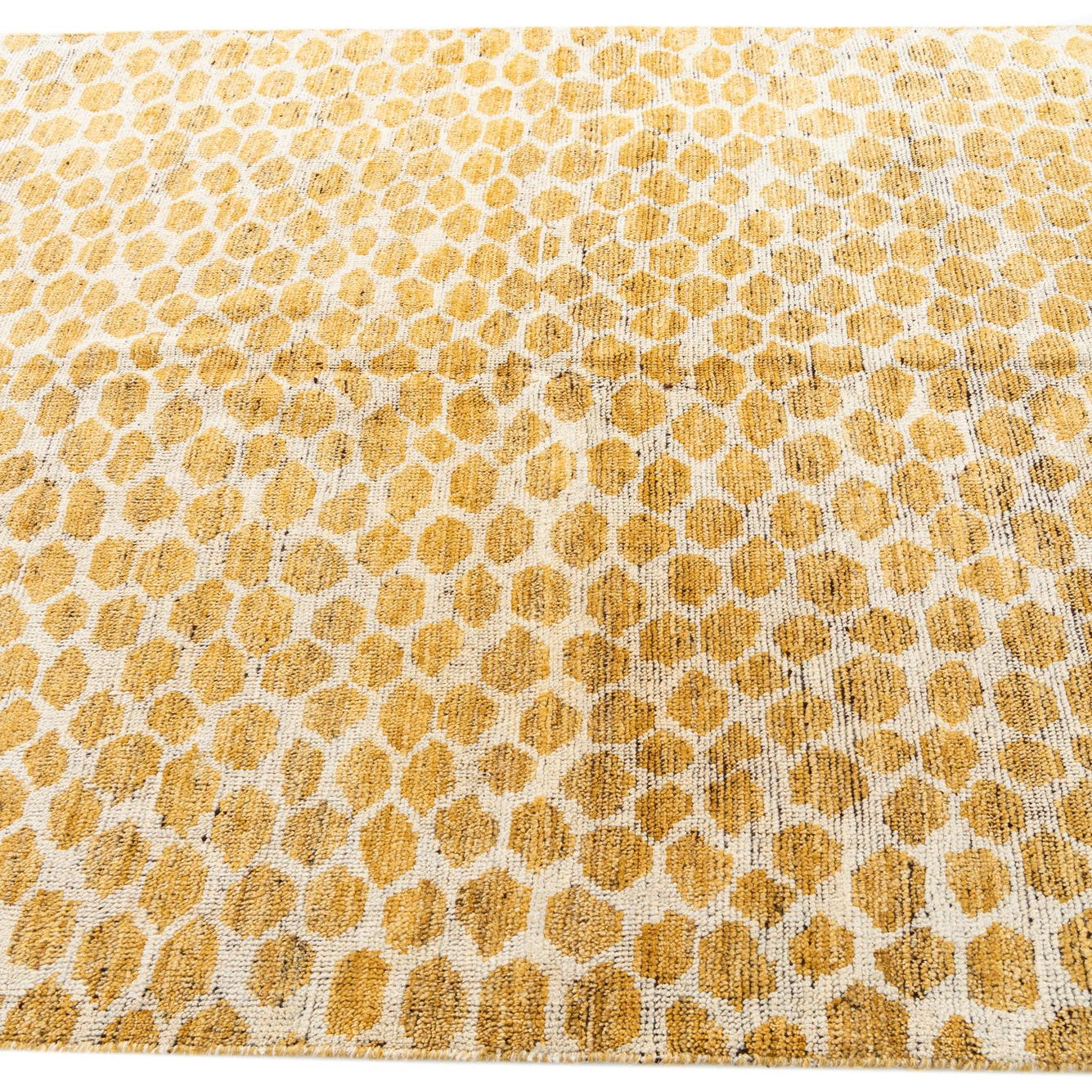 Primary color is Yellow. Colors in this rug include: Yellow, Ivory.