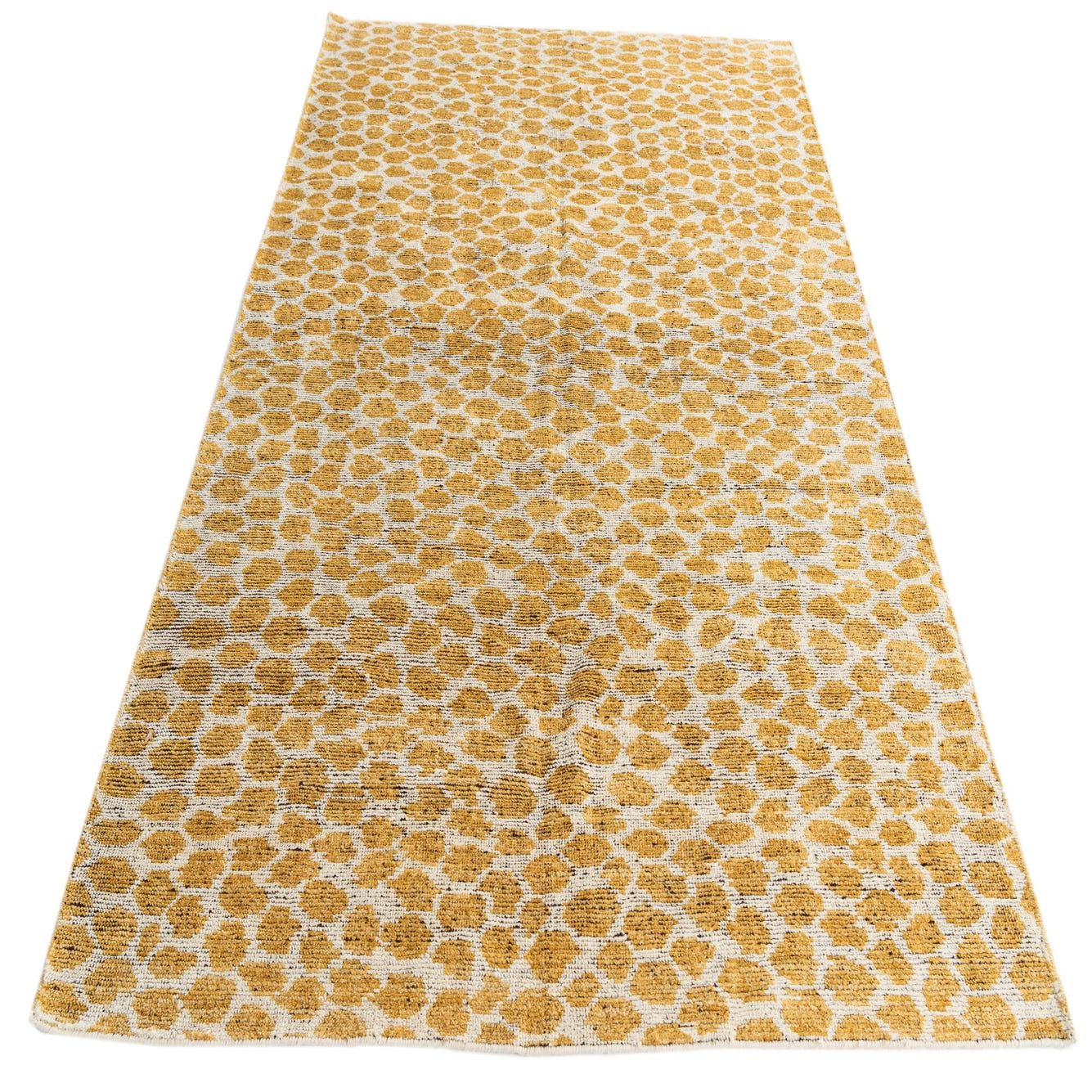 Primary color is Yellow. Colors in this rug include: Yellow, Ivory.
