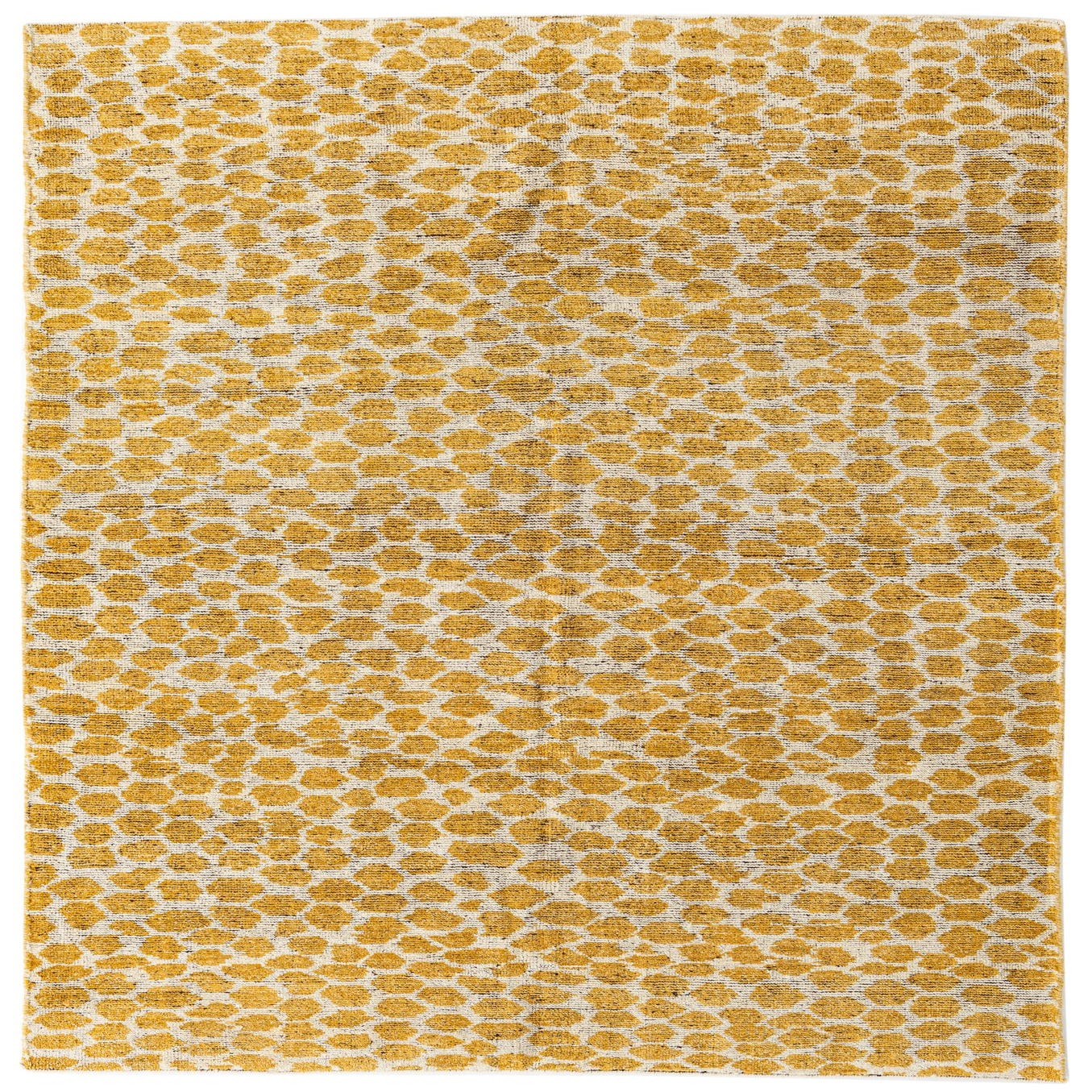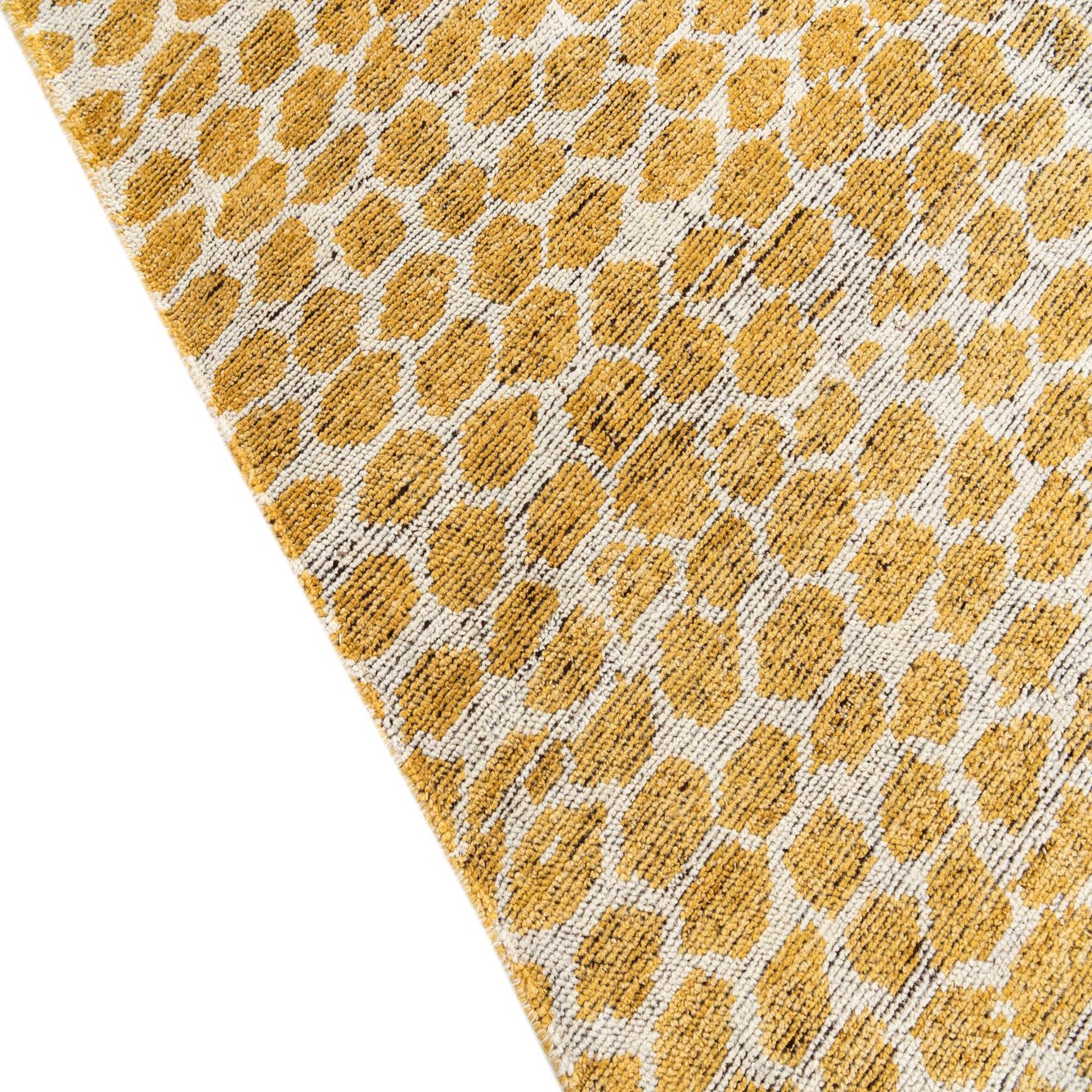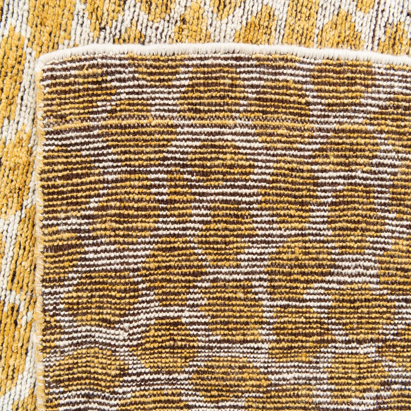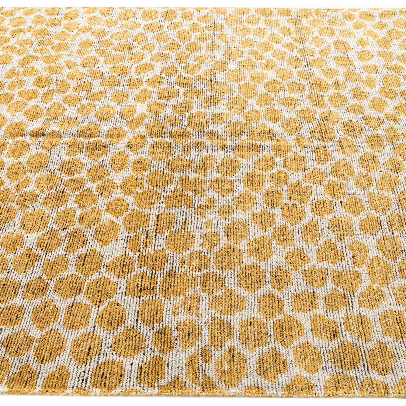 This Moroccan Collection rug features a modern take on a traditional trellis pattern, expressed in bold yellow with ivory accents. The hand-knotted construction of 100% wool offers a luxuriously soft texture, while the 6x9 size is versatile for a range of room settings. The pattern possesses an organic, free-form aspect, which lends itself well to contemporary and eclectic interiors.