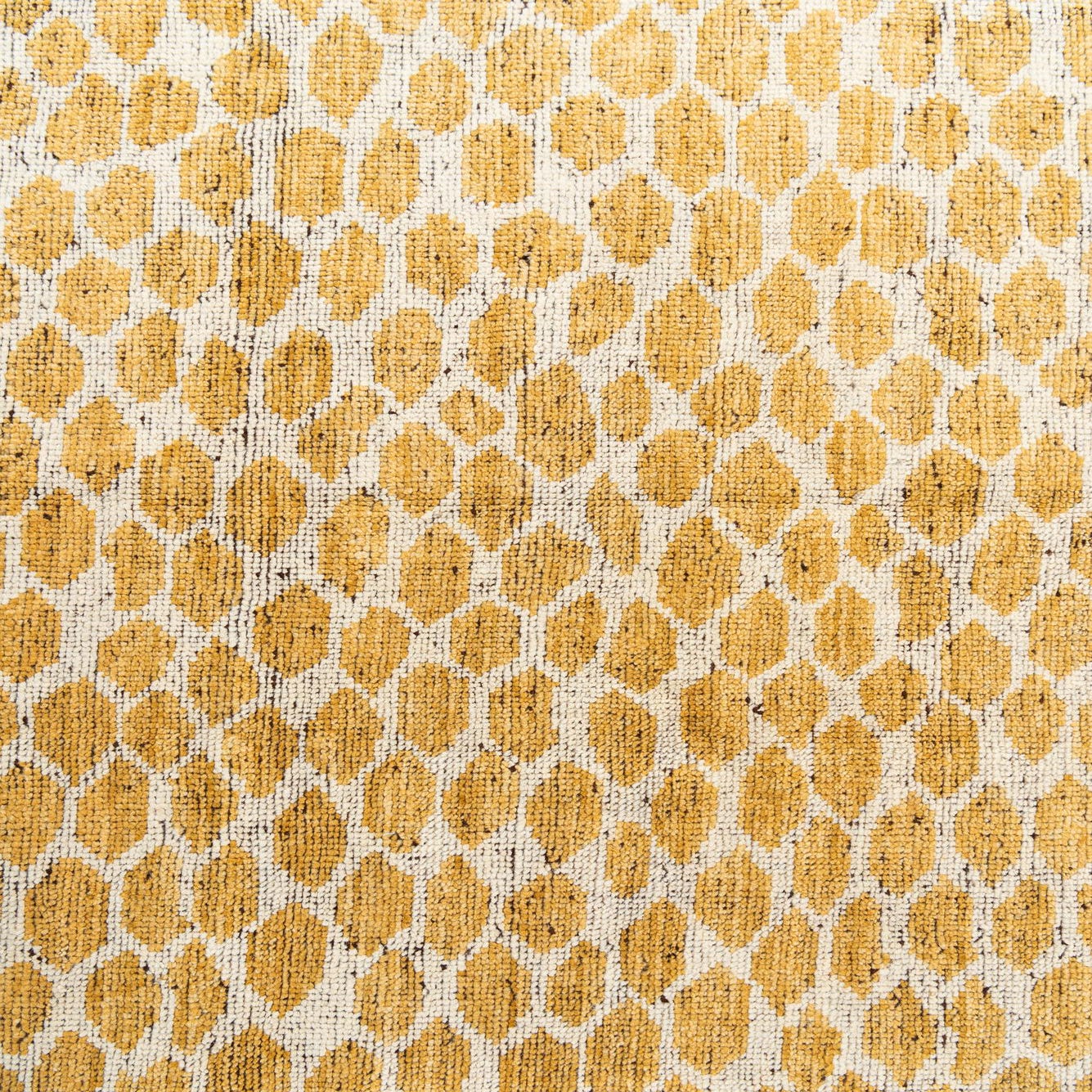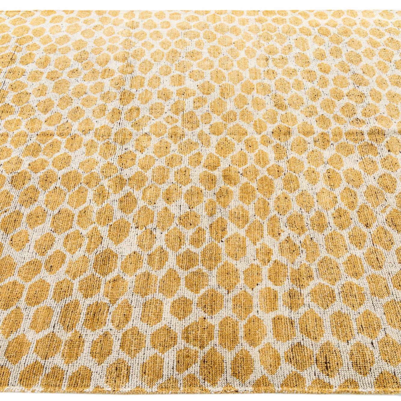 Primary color is Yellow. Colors in this rug include: Yellow, Ivory.