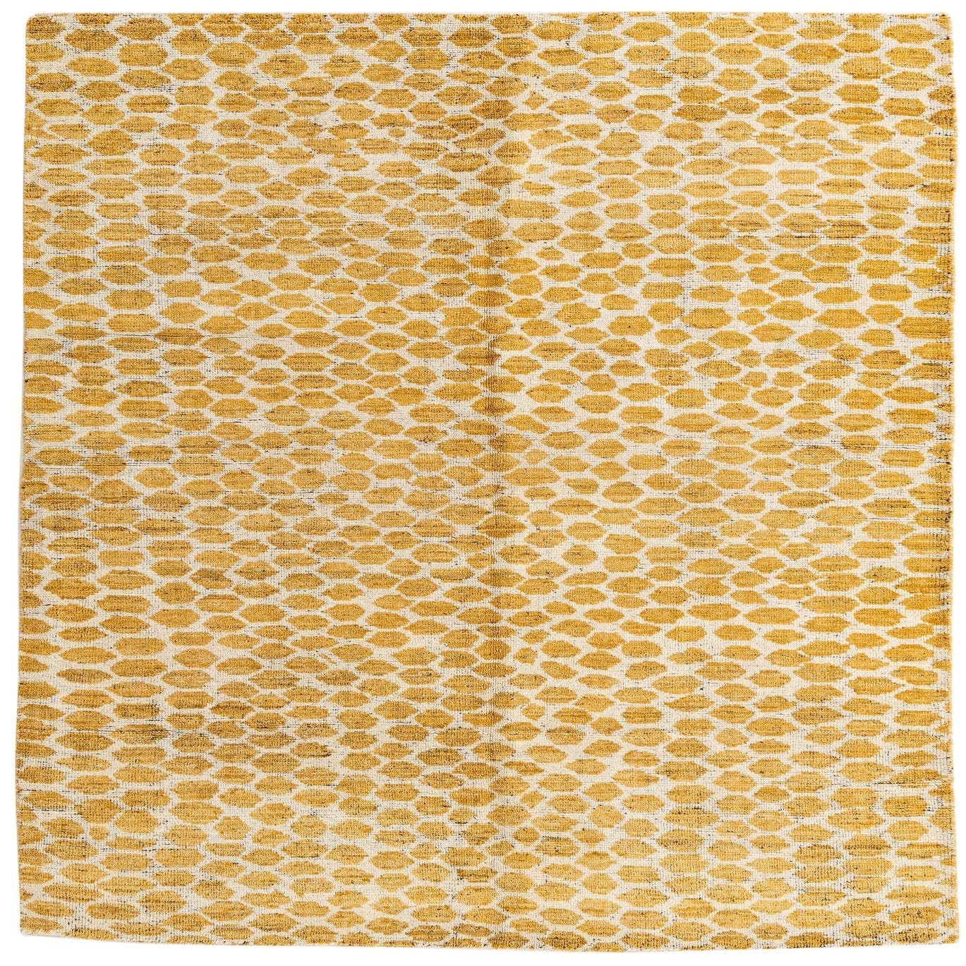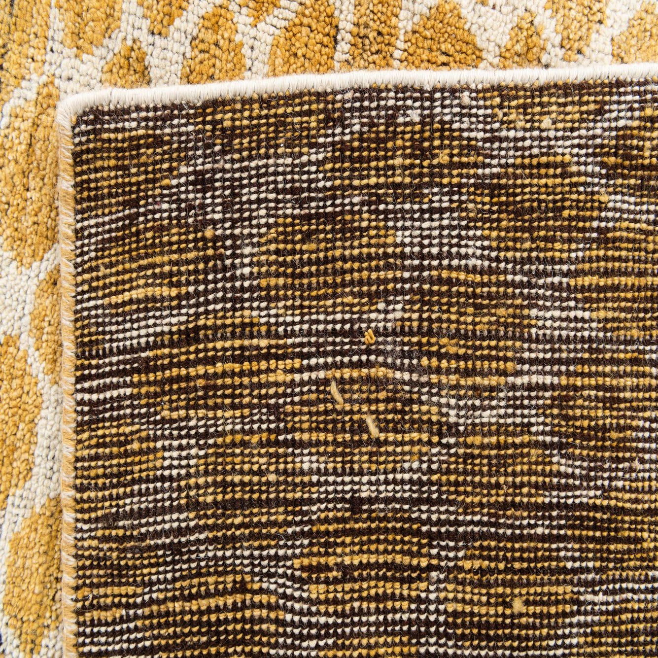 Primary color is Yellow. Colors in this rug include: Yellow, Ivory.