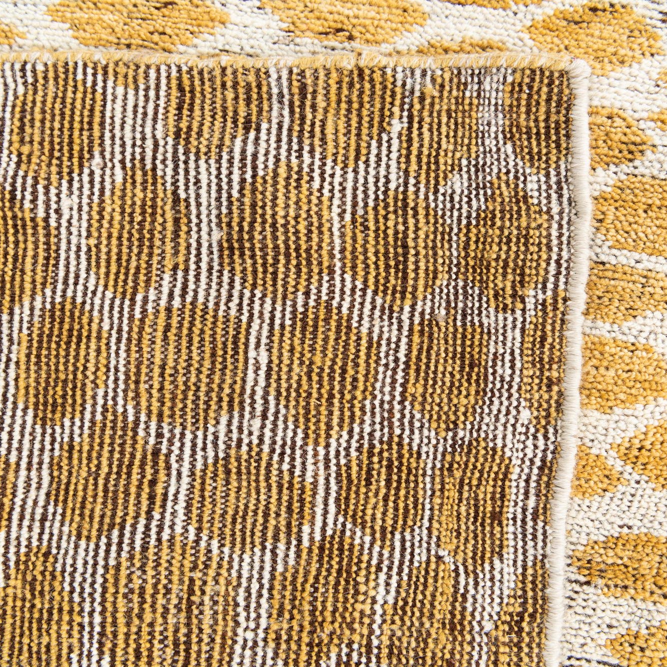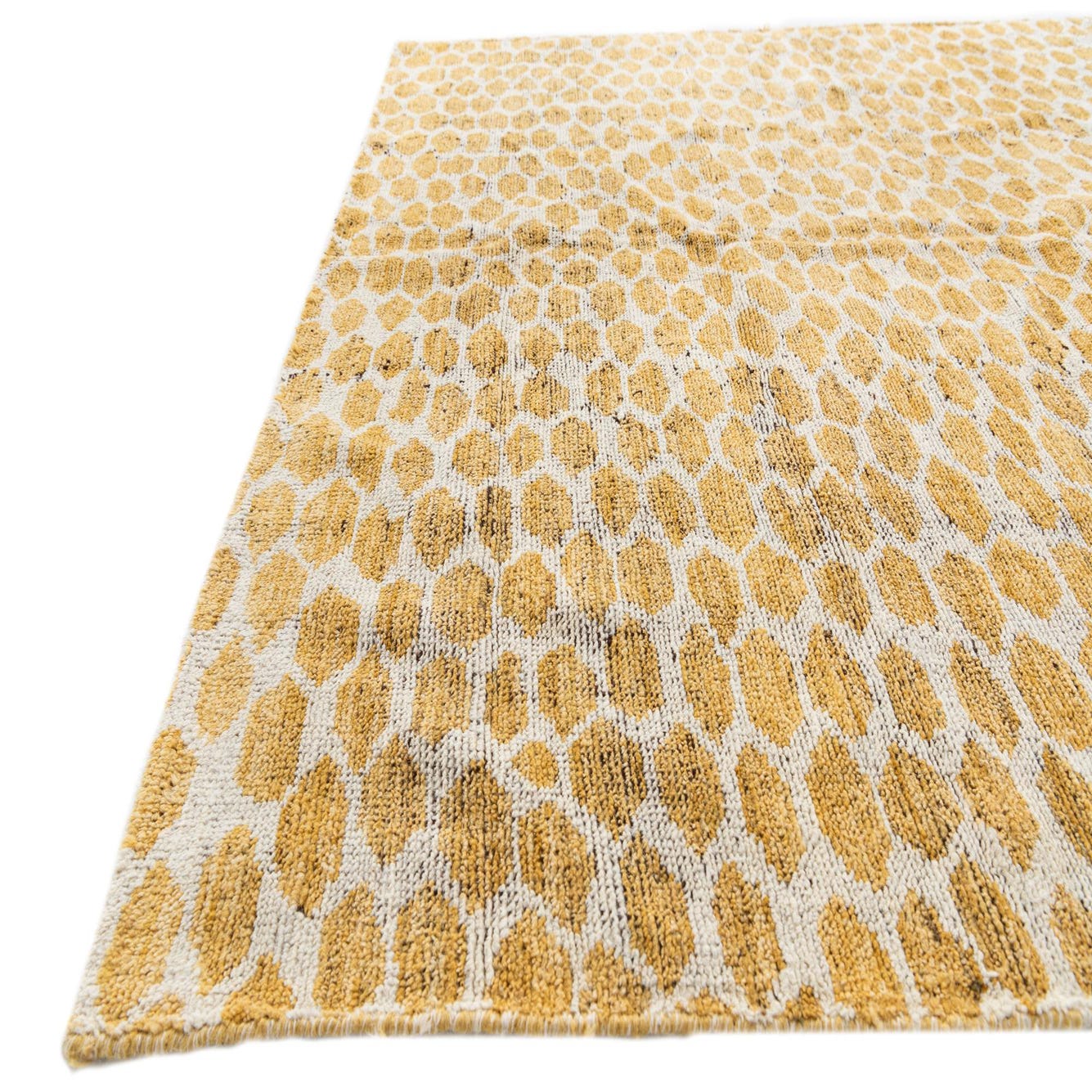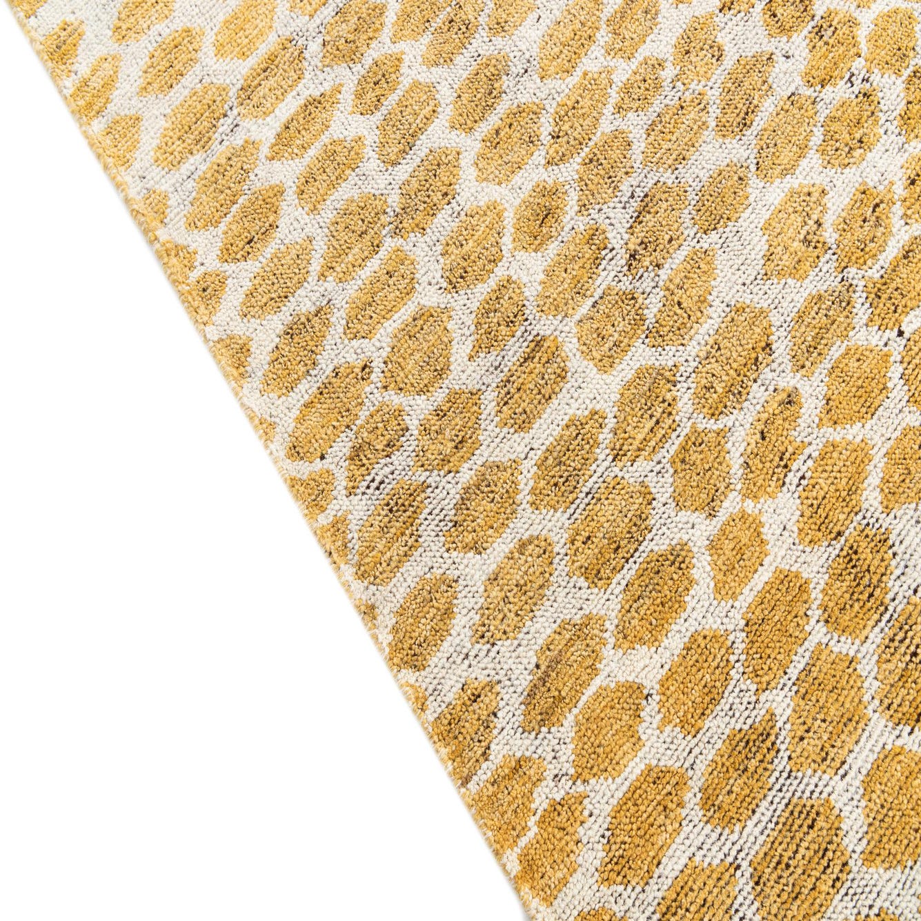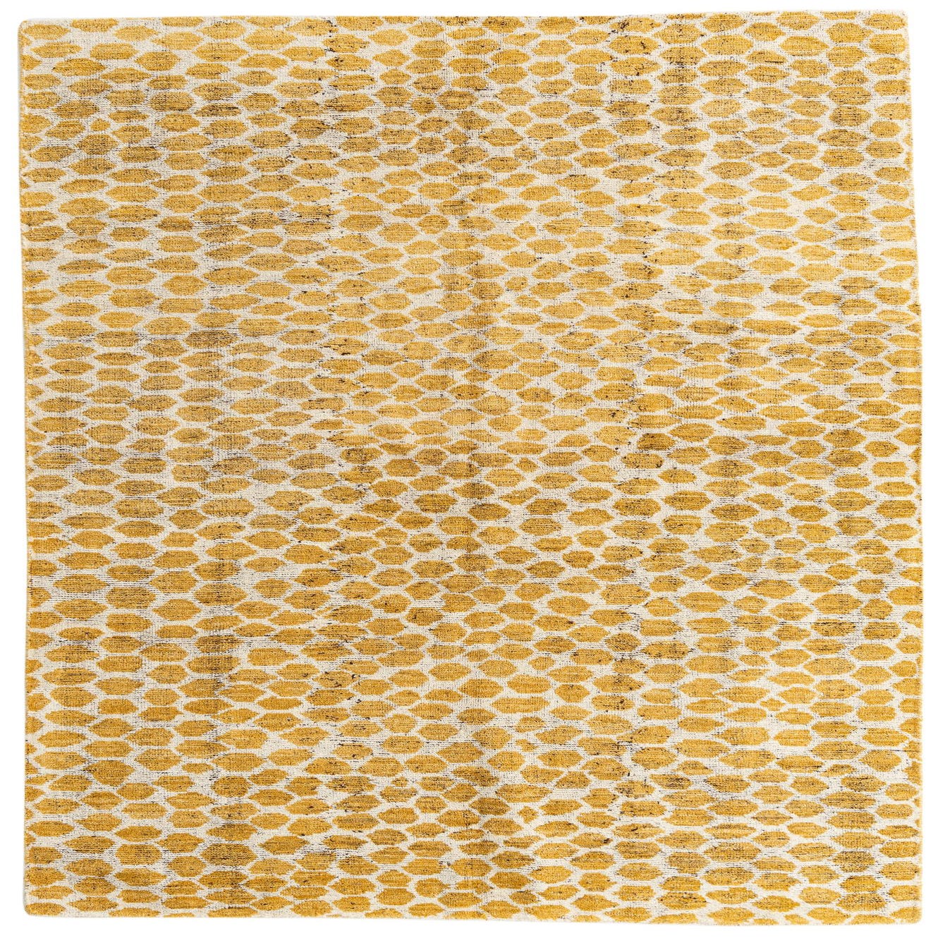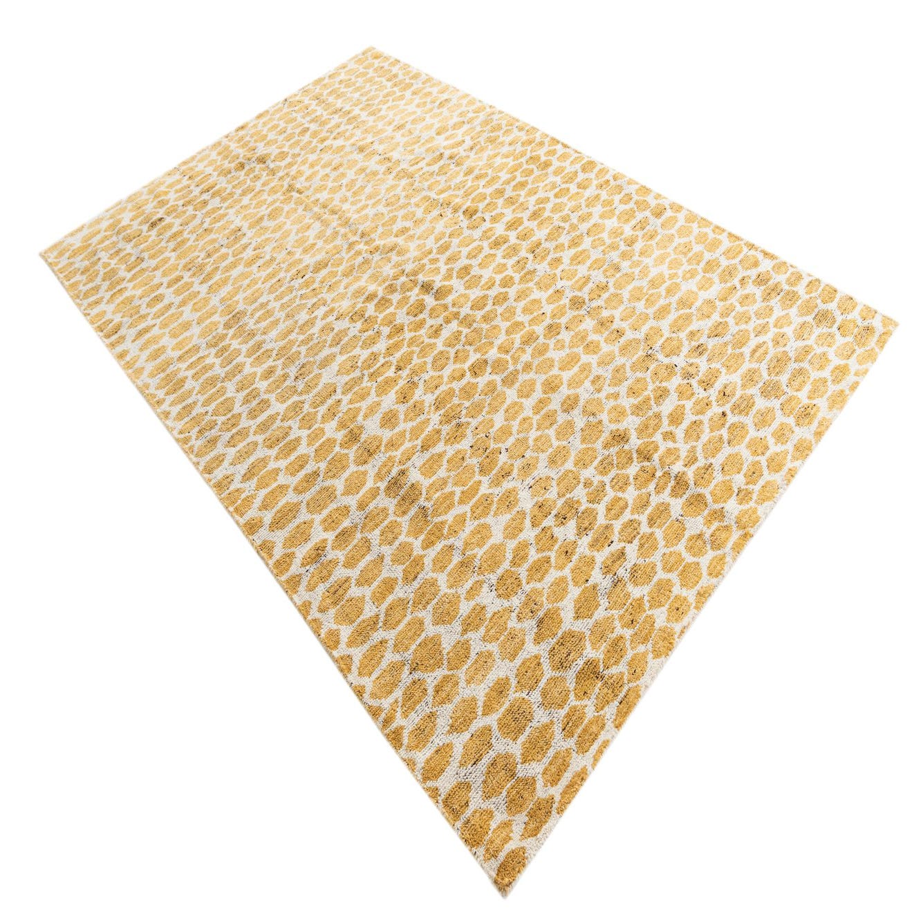 Primary color is Yellow. Colors in this rug include: Yellow, Ivory.