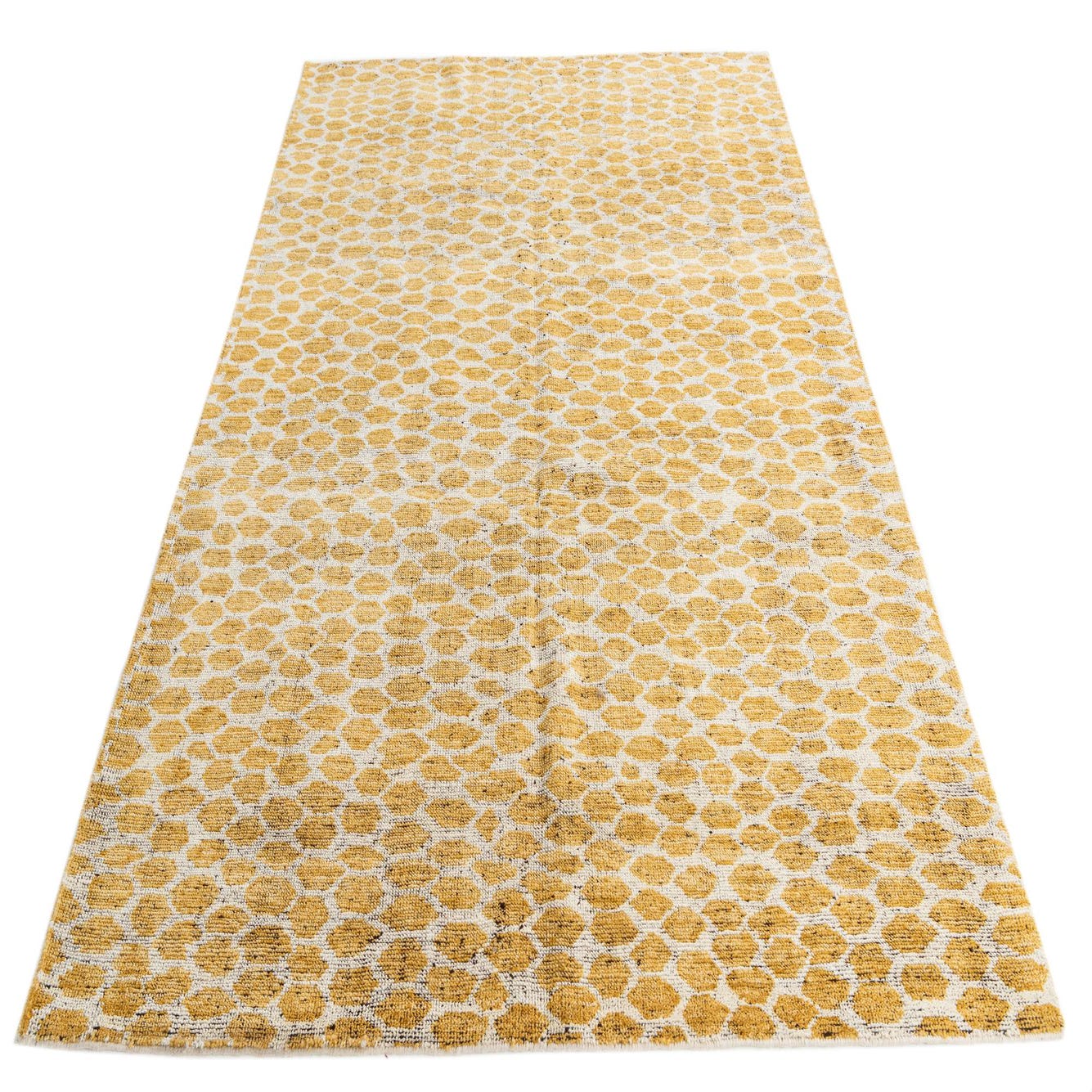Primary color is Yellow. Colors in this rug include: Yellow, Ivory.