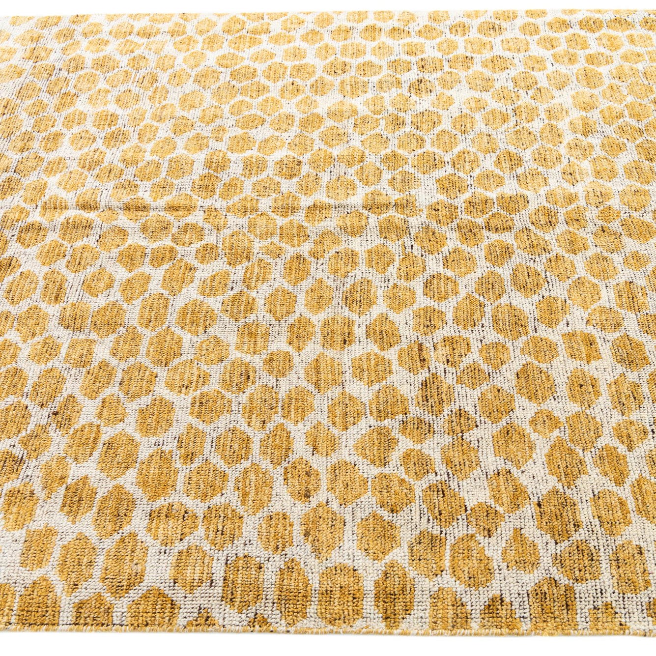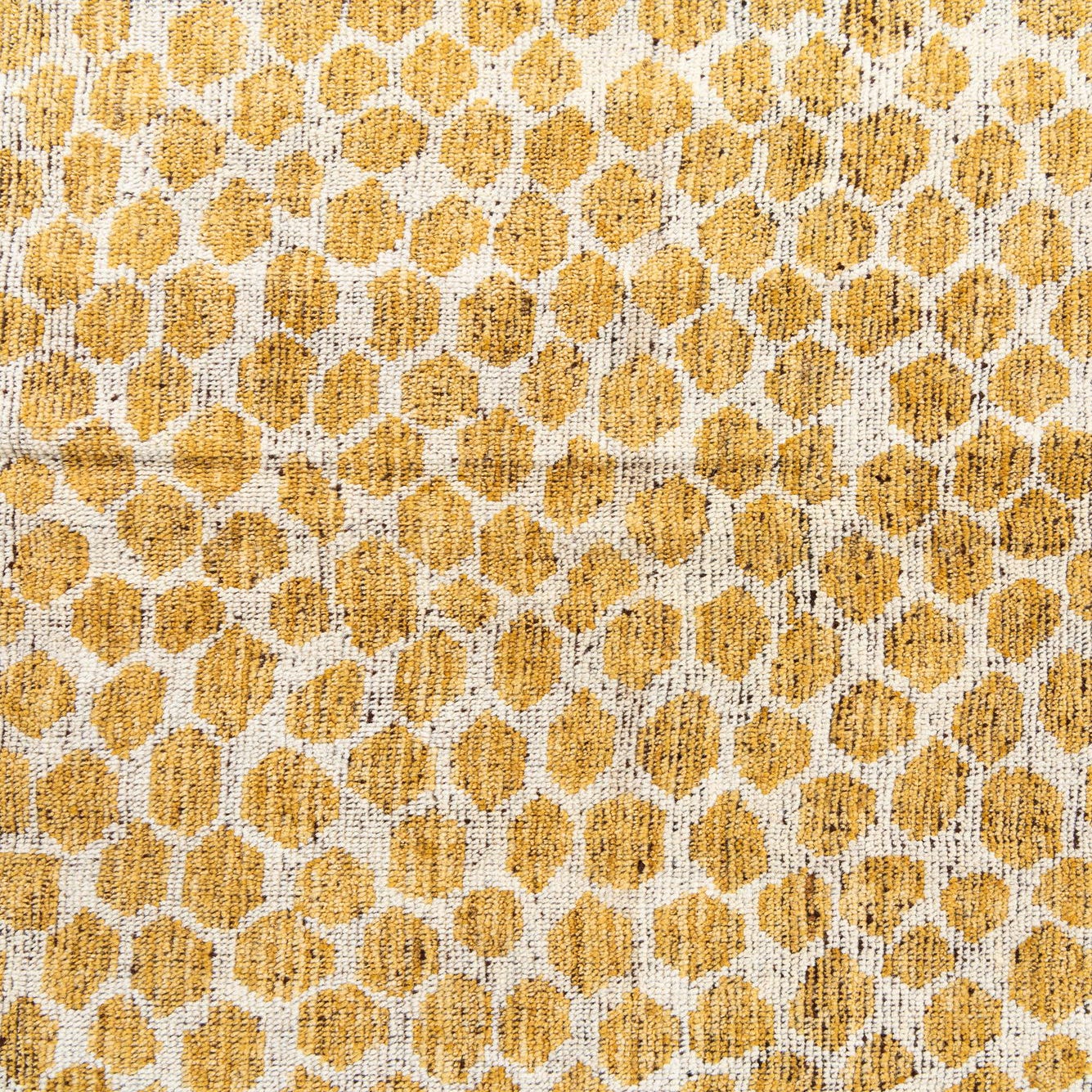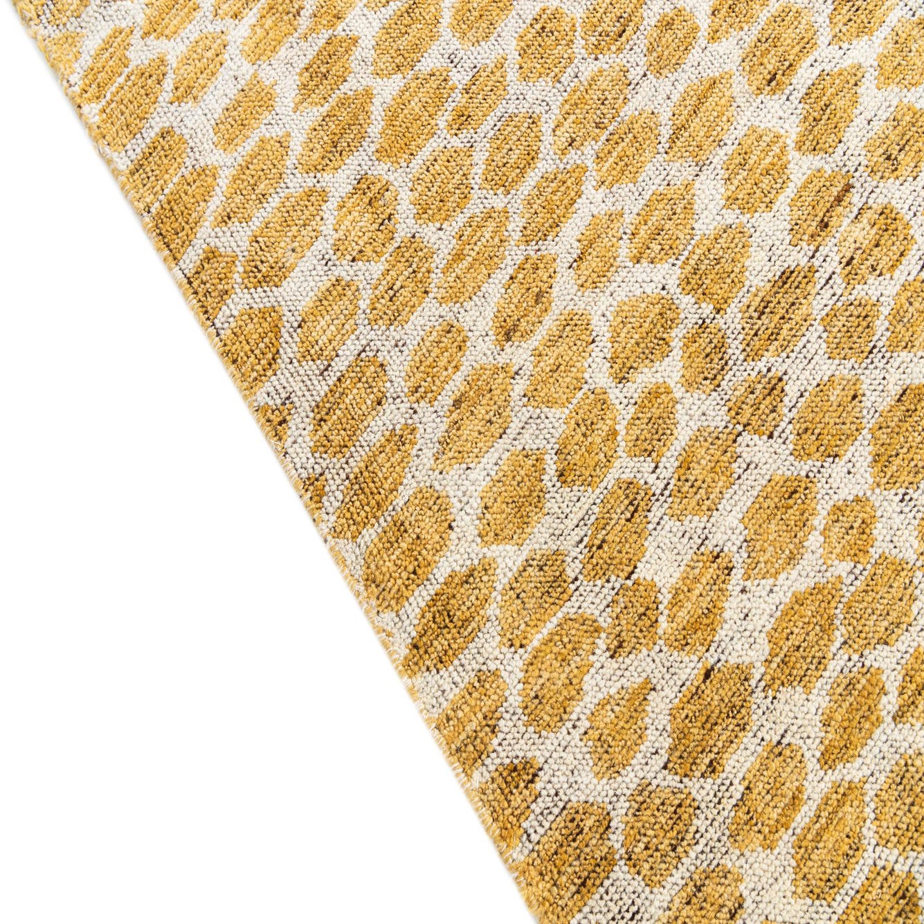 Primary color is Yellow. Colors in this rug include: Yellow, Ivory.