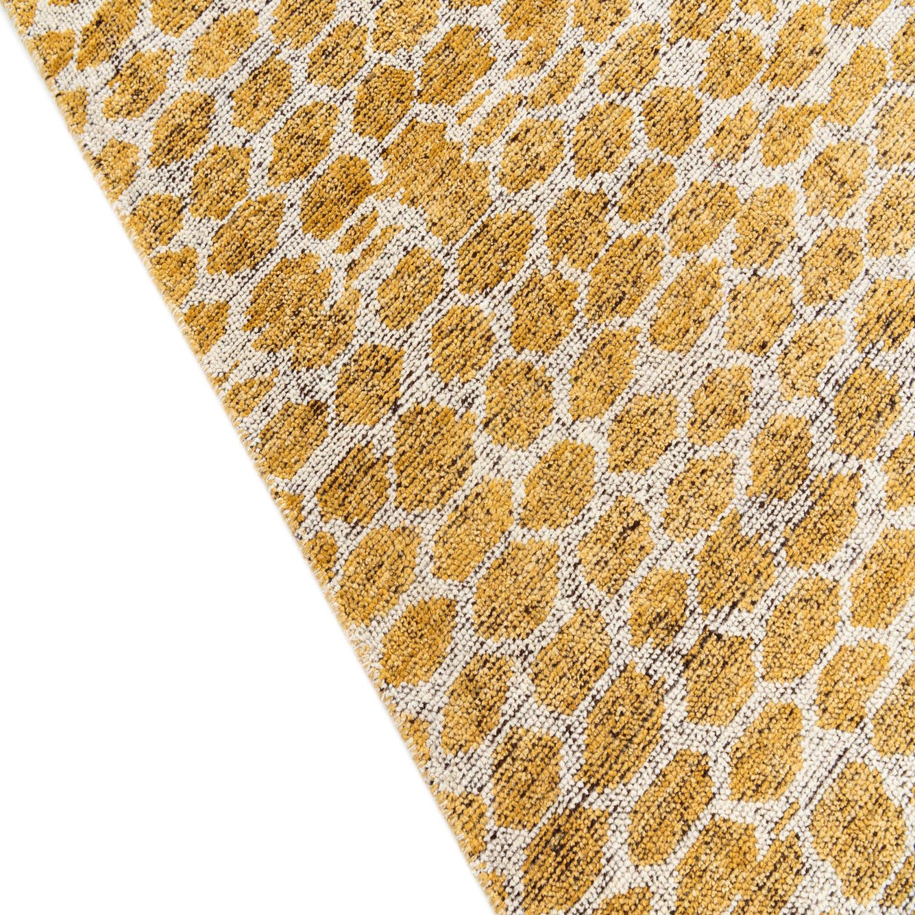 Primary color is Yellow. Colors in this rug include: Yellow, Ivory.
