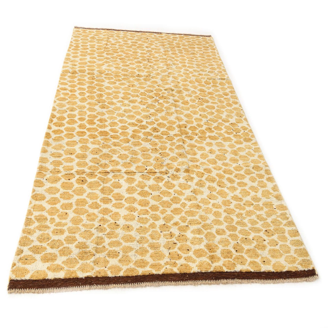 Primary color is Yellow. Colors in this rug include: Yellow, Ivory.