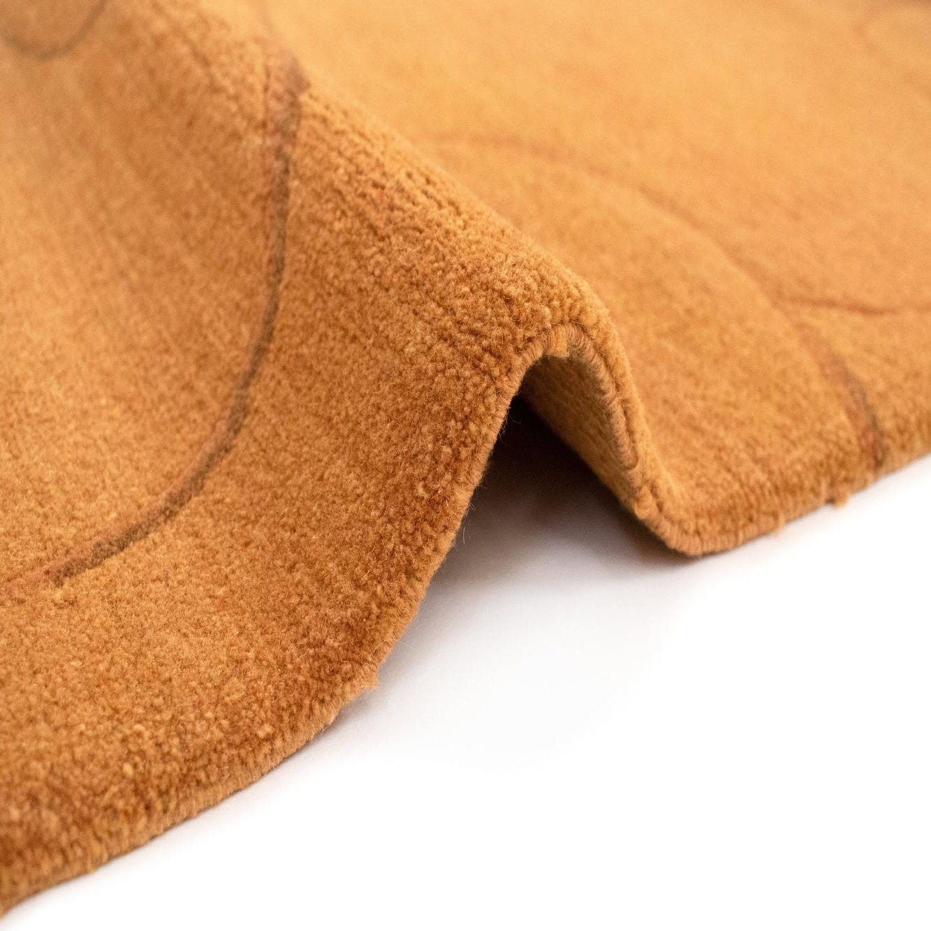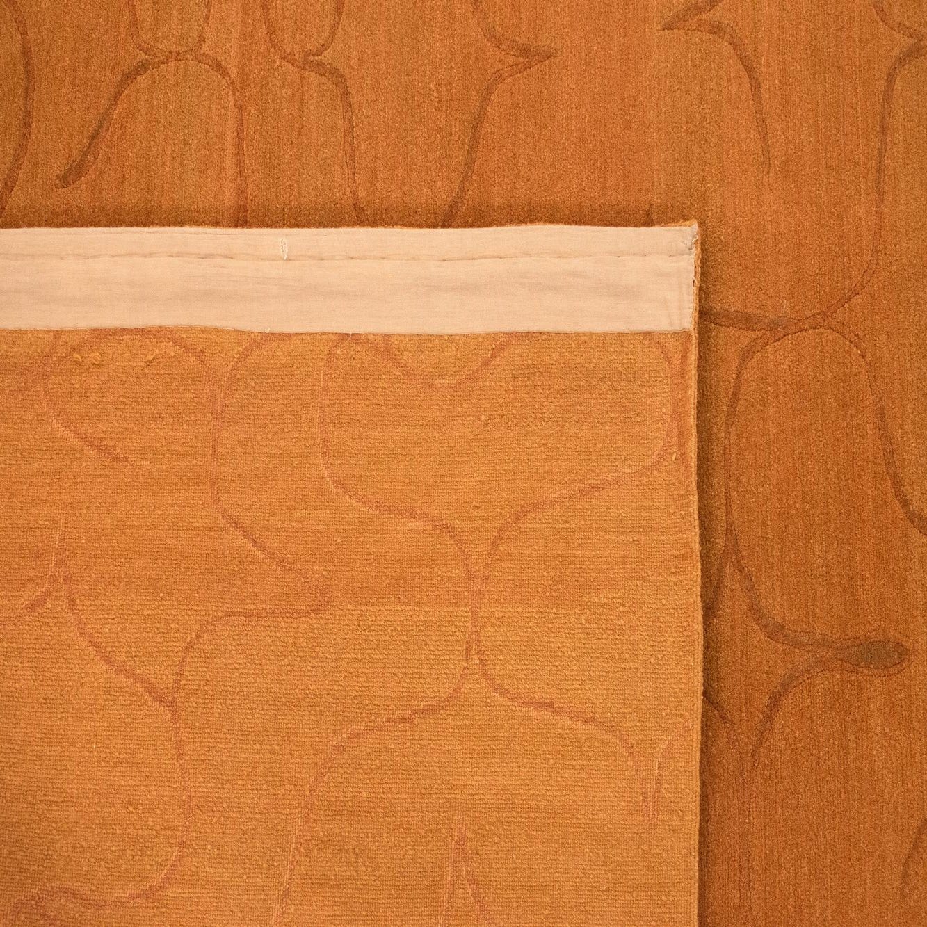 This rug is versatile enough to serve as a statement piece in a variety of decor settings. Its warm tones make it particularly suitable for spaces designed with an emphasis on comfort and warmth, such as contemporary living rooms, cozy studies, or inviting bedrooms. It would also complement interiors that feature earthy elements, such as wood and leather, harmonizing with natural materials to create a serene and grounded environment.