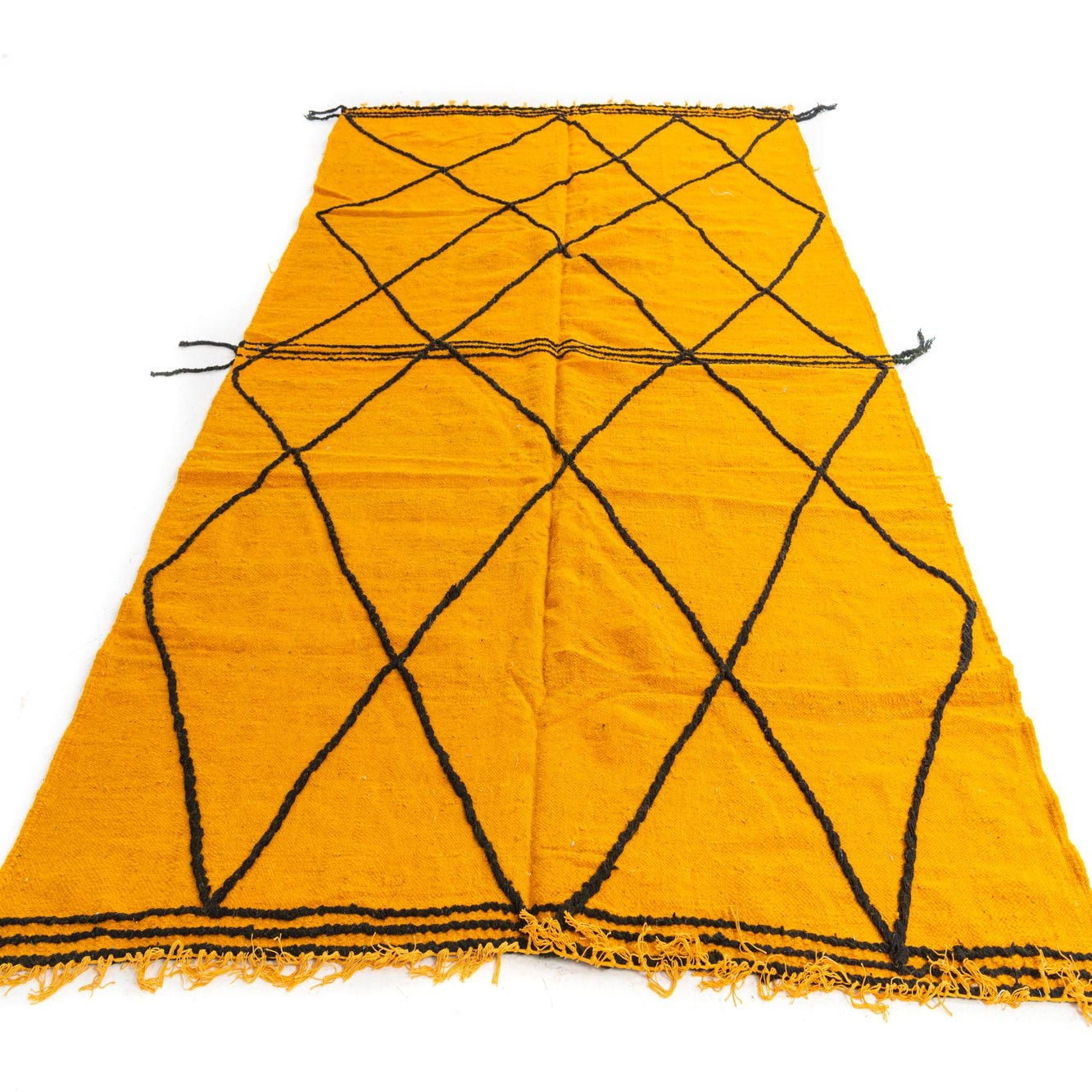 Primary color is Yellow. Colors in this rug include: Yellow, Black.