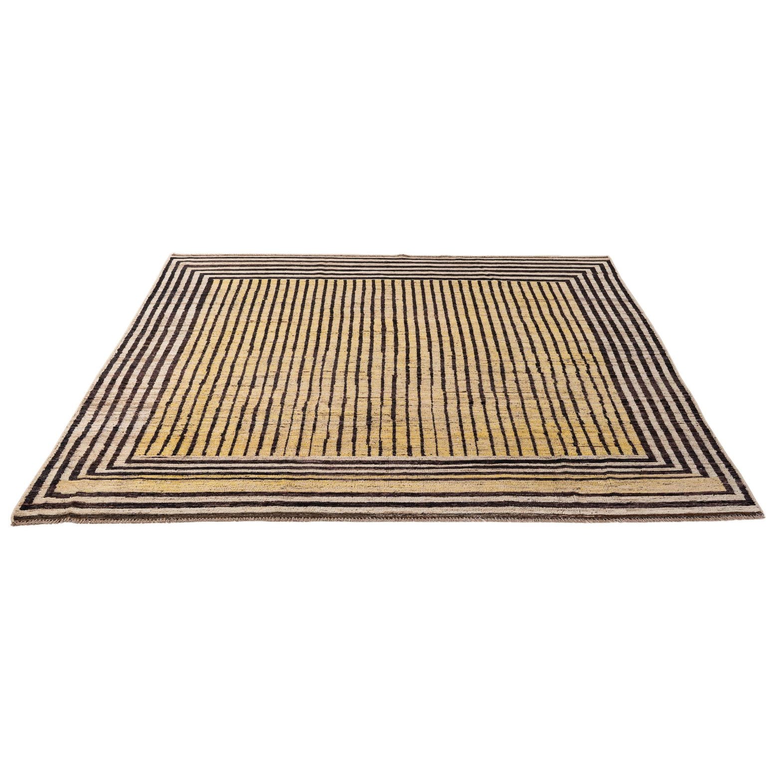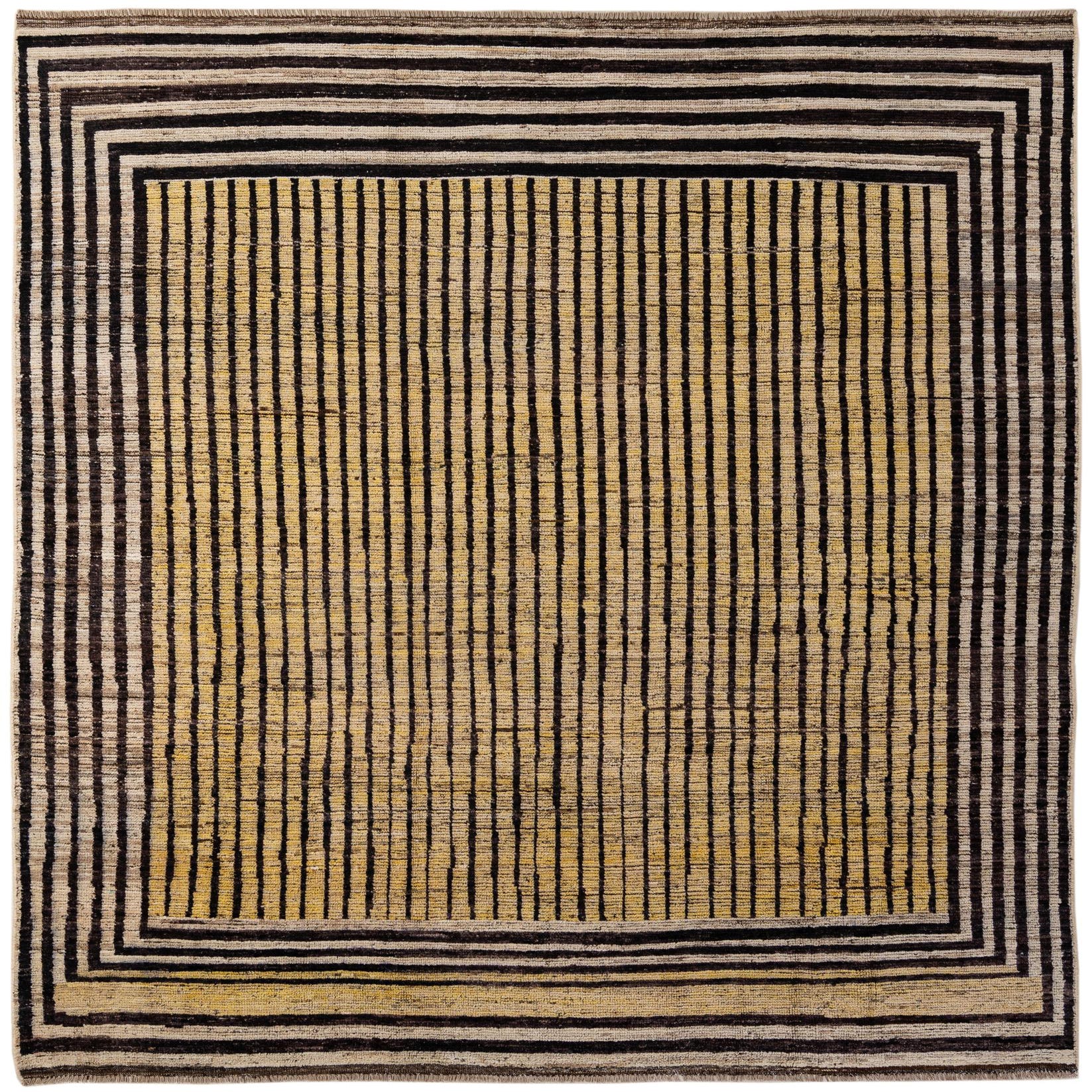 Primary color is Yellow. Colors in this rug include: Yellow, Brown, Ivory.
