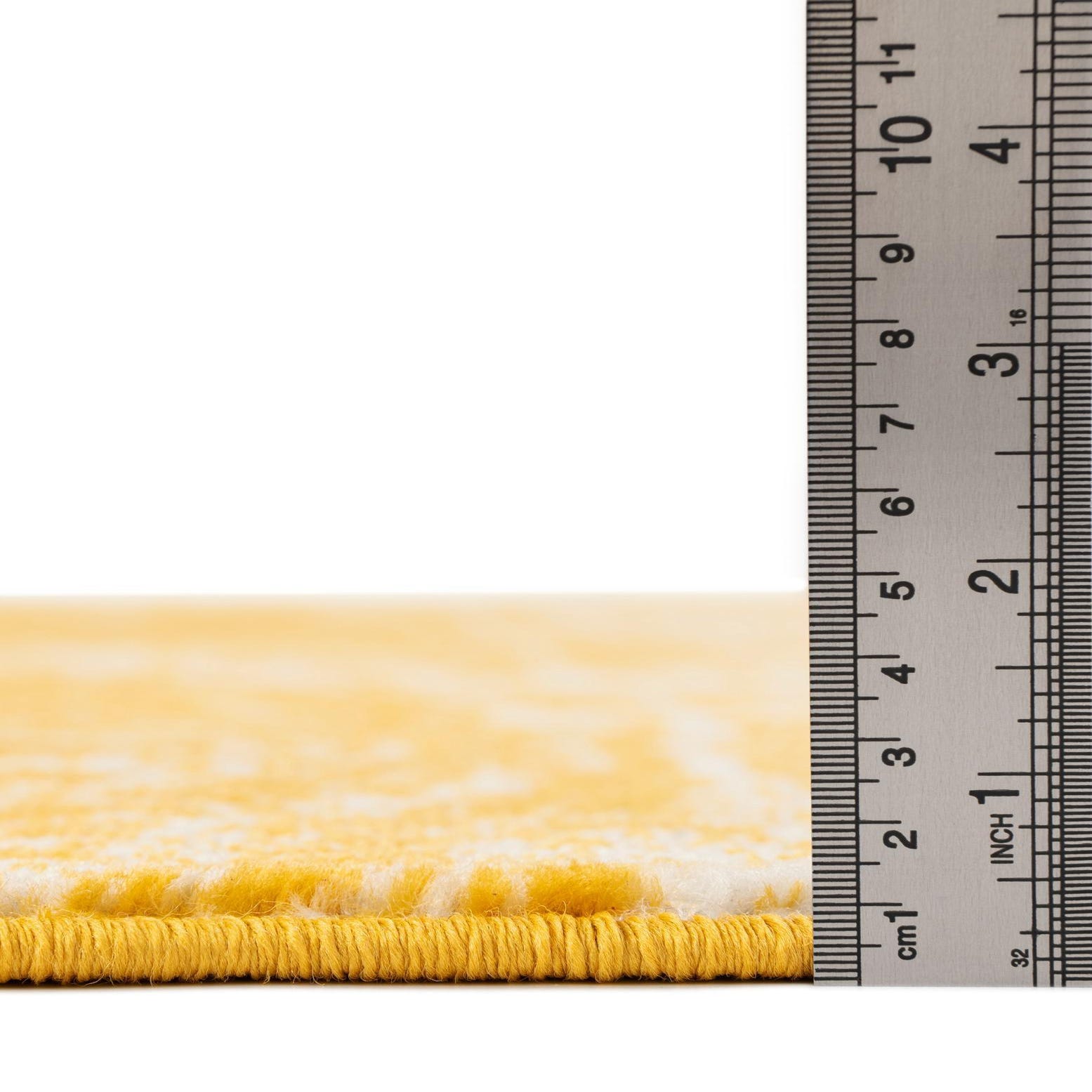Primary color is Yellow. Colors in this rug include: Yellow, Ivory.