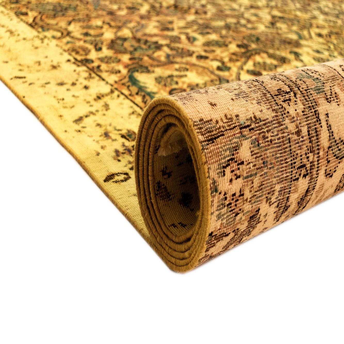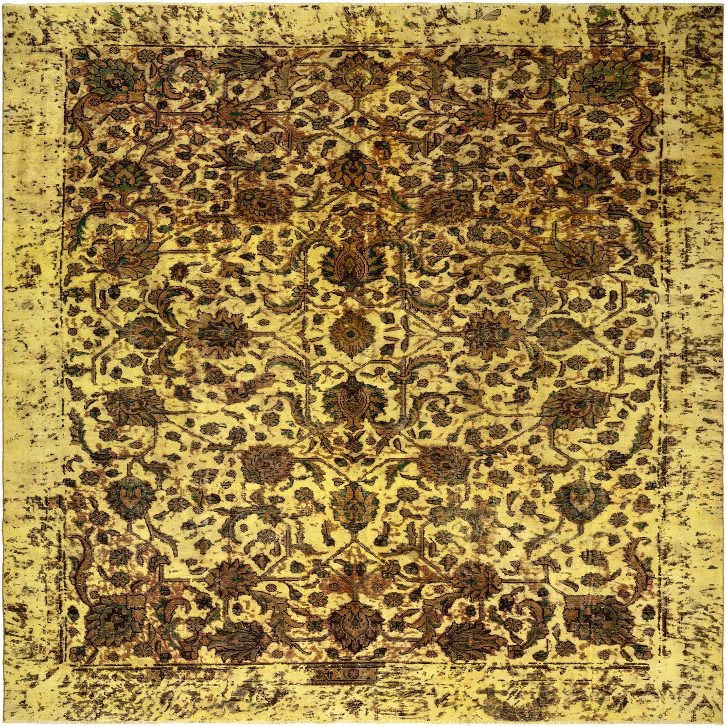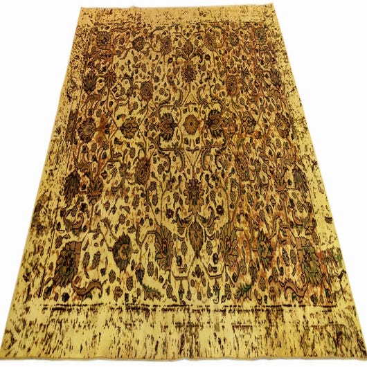 Primary color is yellow. Colors in this rug include: yellow, Brown.