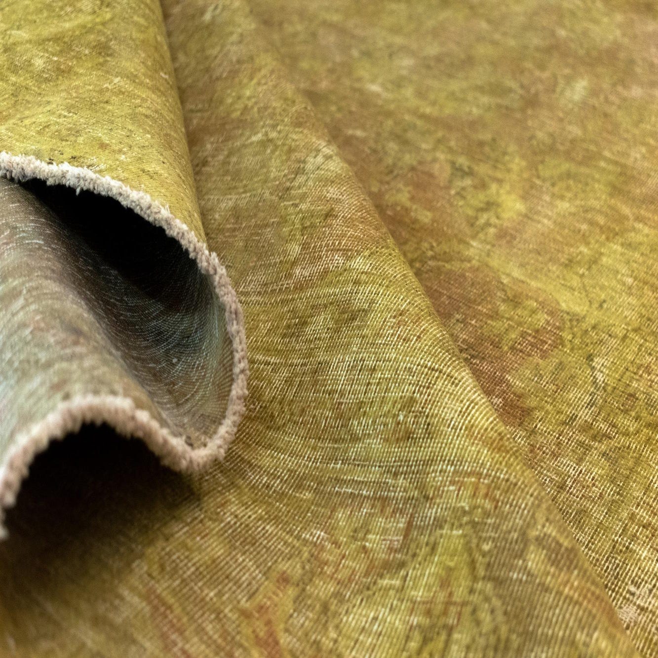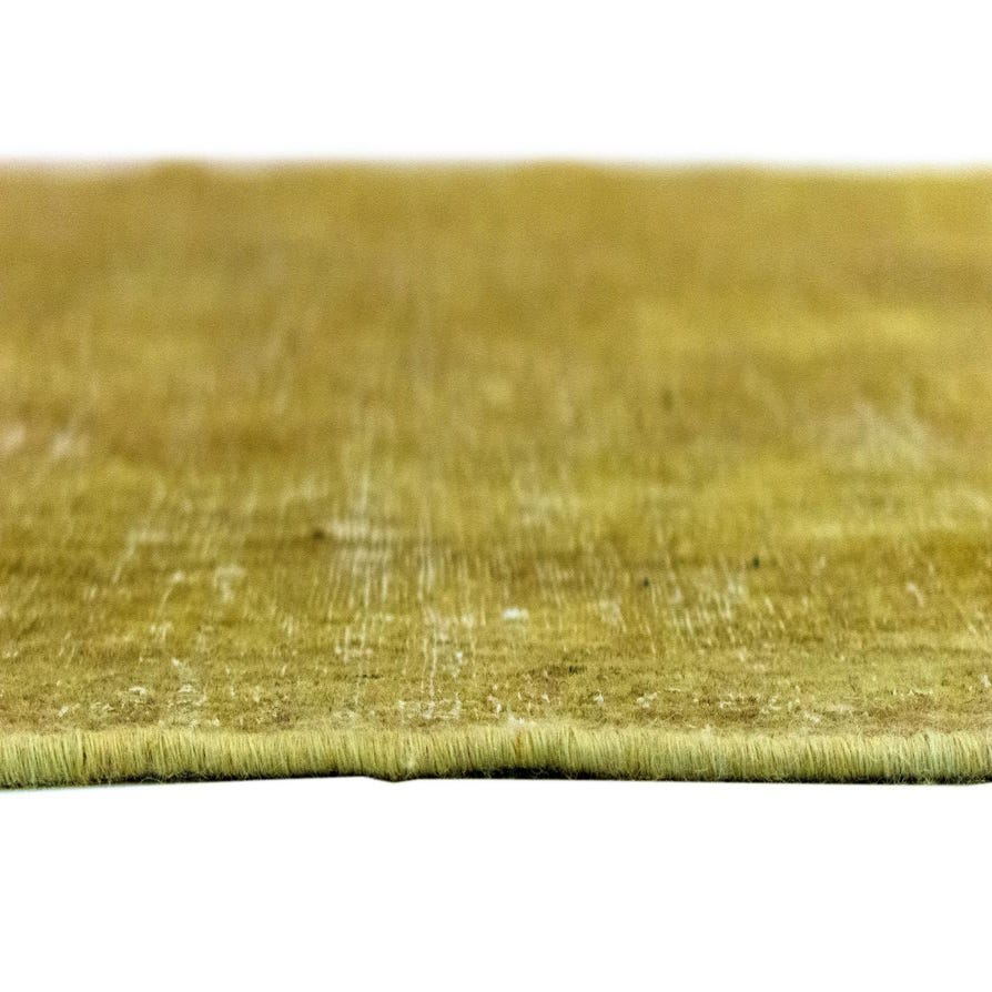A large 8x11 rectangular yellow Persian wool rug with a subtle, faded traditional pattern, suitable for a living room.