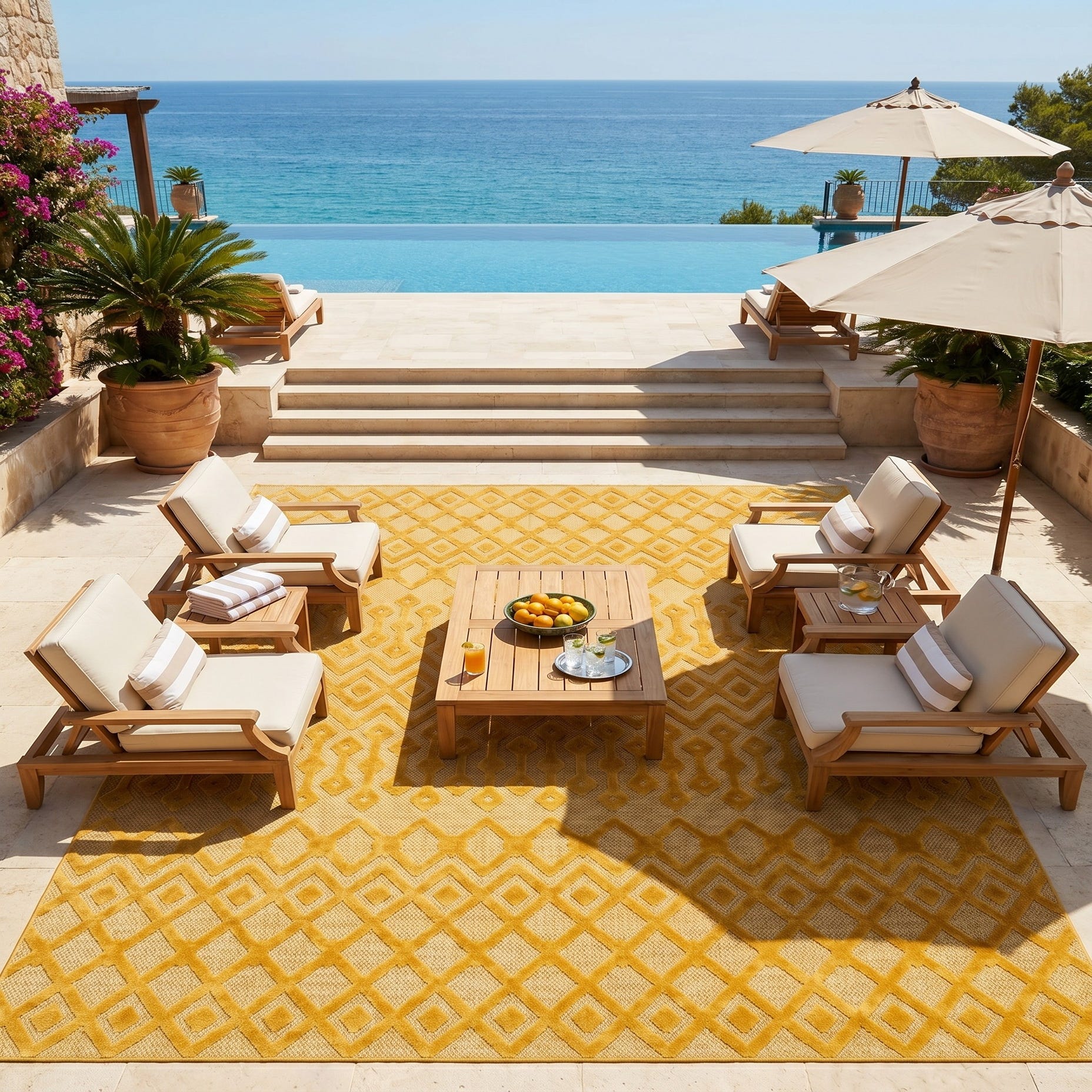 • Weathered teak outdoor lounge set