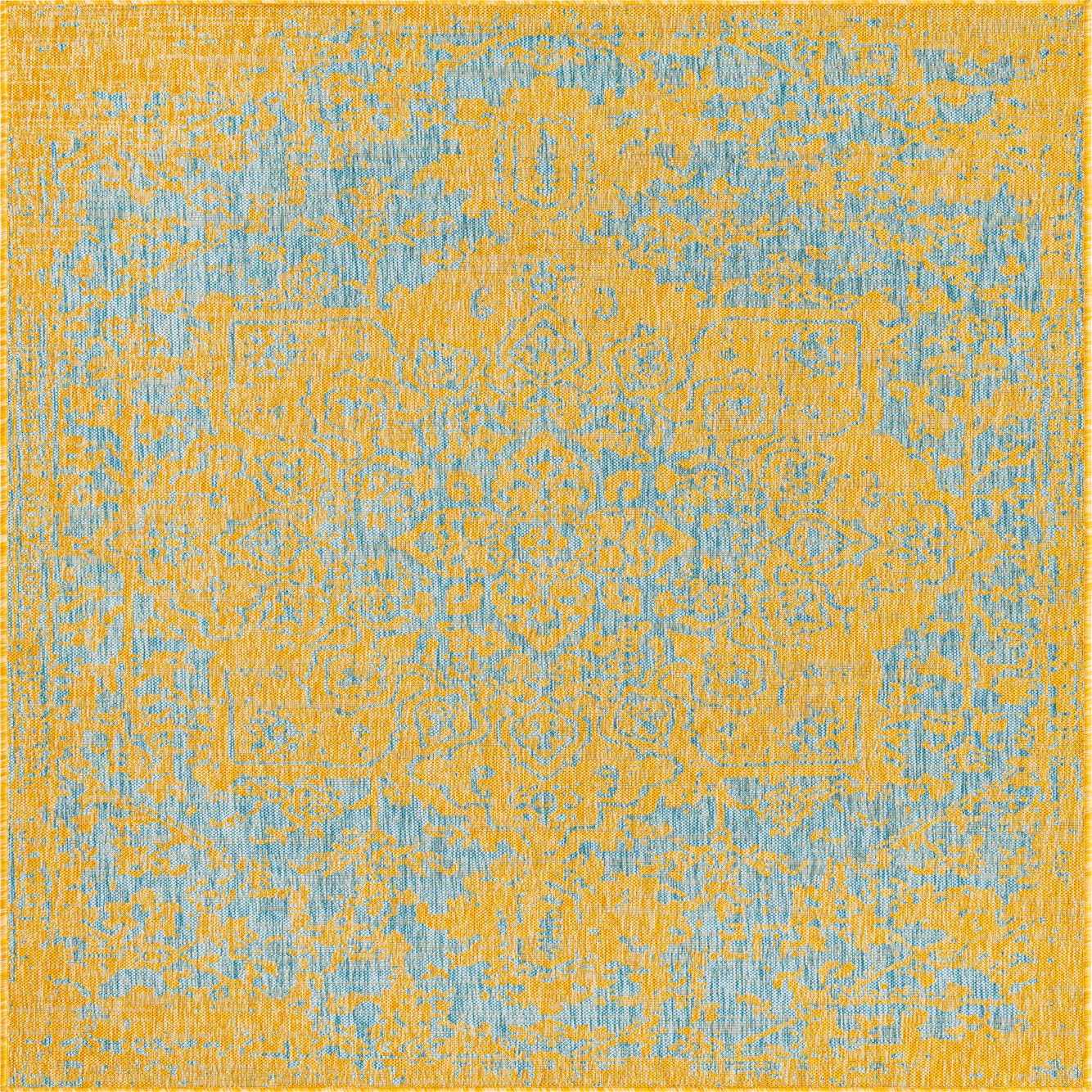 Detail image of  Custom Yellow and Aqua  Washable Jill Zarin Indoor / Outdoor Rug
